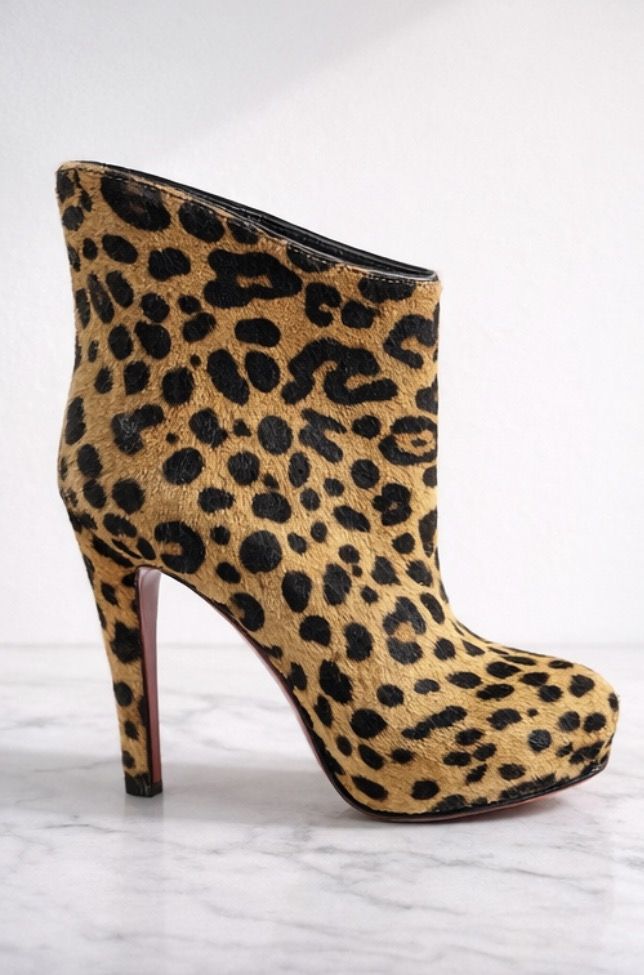 Christian Louboutin Leopard Pony Hair Ankle Booties Red Bottom