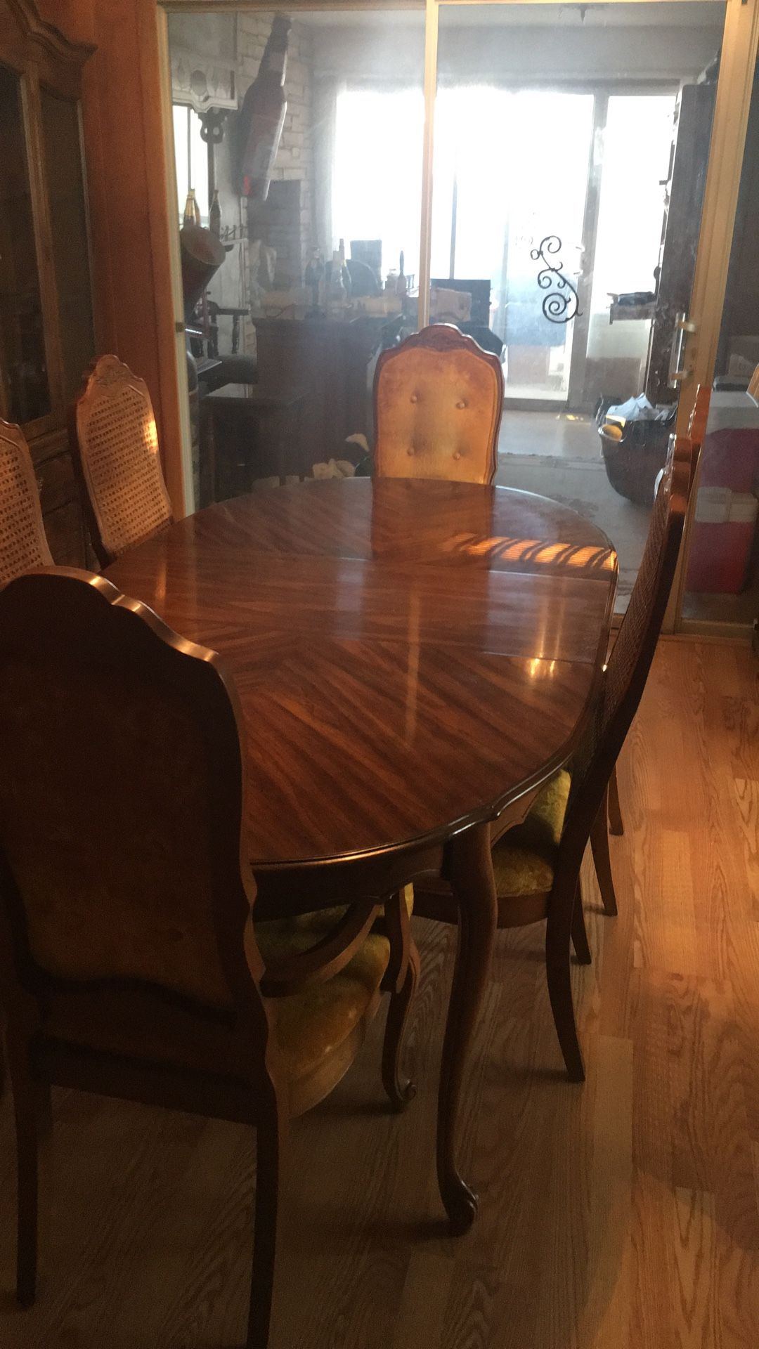 Vintage Dining Oak Table With 6 Chairs And Cabinet