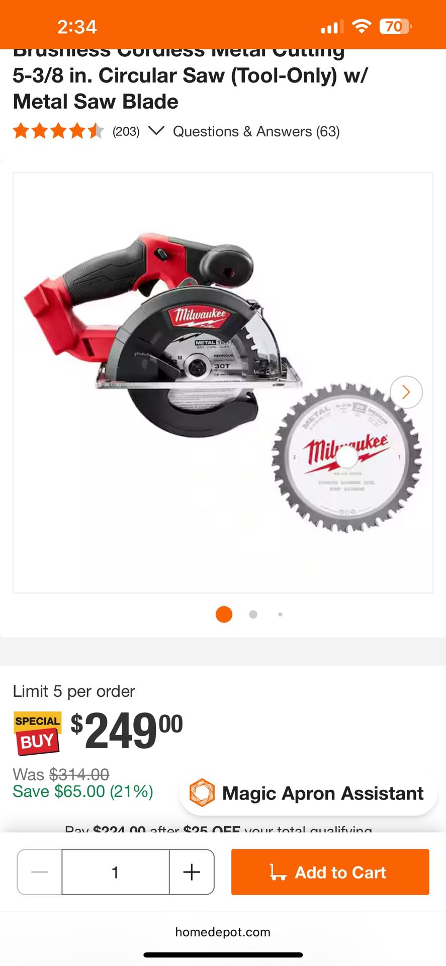 MILWAUKEE 5 3/8 In. CIRCULAR SAW + BATTERY