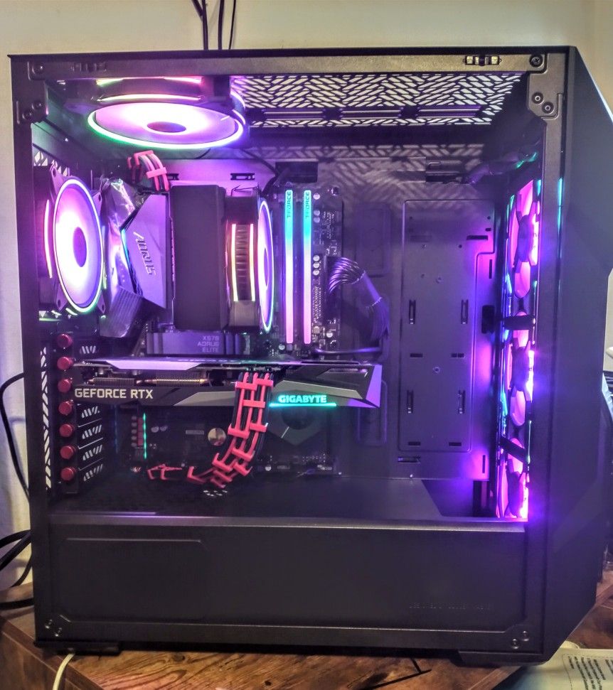 It's a fine PC. Paired entry level parts for a fine PC. I have some higher ones and could tailor this if needed. AMD Ryzen 5 5600X 3.7 GHz 6-Core Cooler Master Hyper 212 CPU Cooler TEAMGROUP T-Force Delta RGB 32 GB (2 x 16 GB) DDR4-3600 CL18 Memory Western Digital Black SN770 1 TB M.2-2280 PCIe 4.0 X4 NVME Solid State Drive EVGA SuperNOVA 750 GT 750 W 80+ Gold Cooler Master MasterFan MF140 Halo² 140 mm Cooler Master MasterBox TD500 Mesh V2 2 Cooler Master MasterFan MF Halo 120 Asiahorse matrix 360mm fan -front Gigabyte X570S AORUS ELITE ATX AM4 Gigabyte GAMING OC GeForce RTX 3060 Ti 8 GB Video Card Also has a some cable extensions and a coolermaster argb controller hooked up to motherboard for software control since it's better than the software from gigabyte.