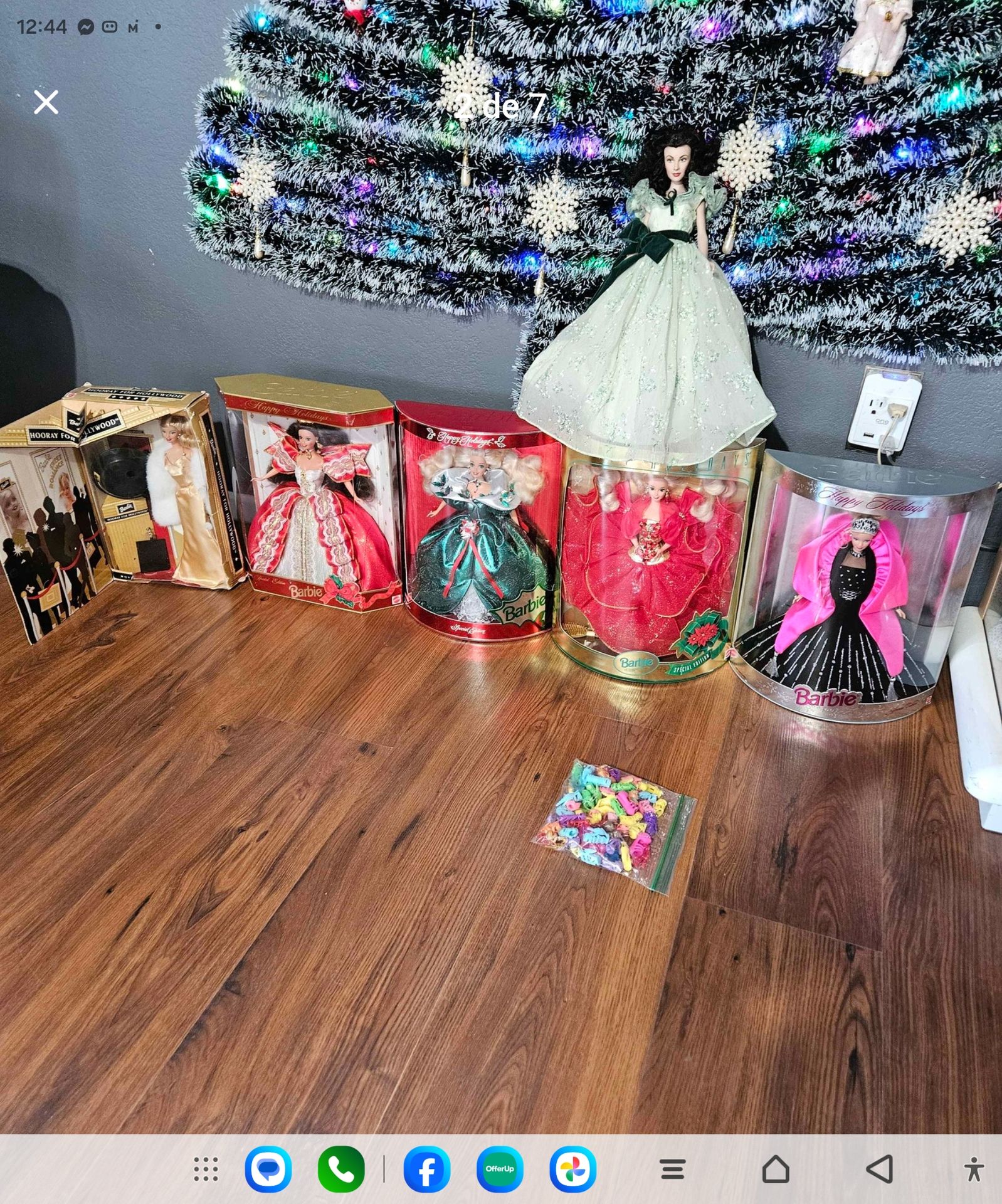 Lot of Happy Holidays Barbie dolls, plus one from the movie *Gone with the Wind*.