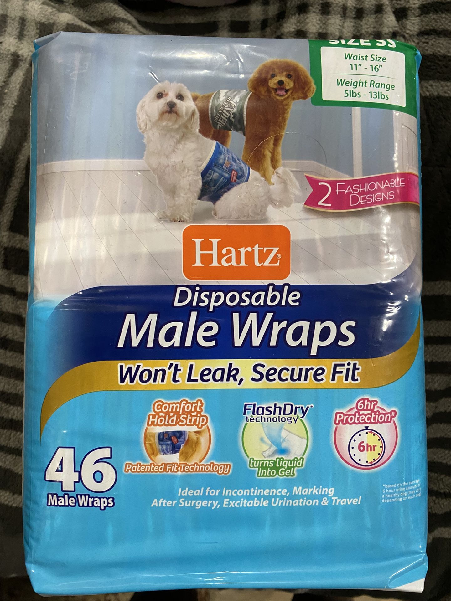 Hartz Disposable Male Wraps 46 in a pack. I have one pack that has never been open and the other I took 1 out to try on my dog. Both packs for $10