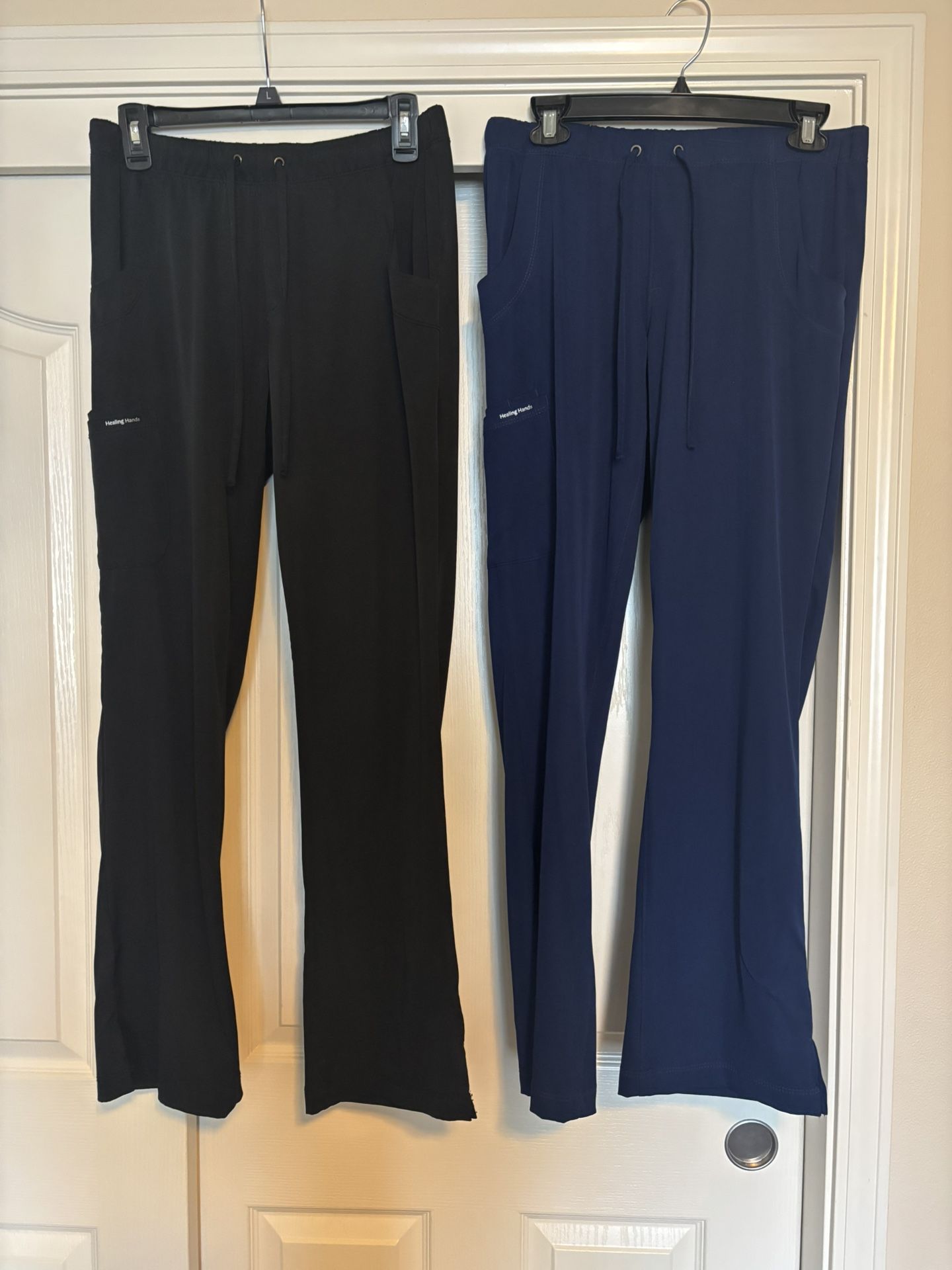Ladies Healing Hands scrub pants all size small, barely worn in excellent shape 1 pair Navy , 2 Black pairs all have 2 front pockets 2 back pockets right leg has 3 cargo pockets $10 each pick up central point same day as sold no holds no deliveries x posted