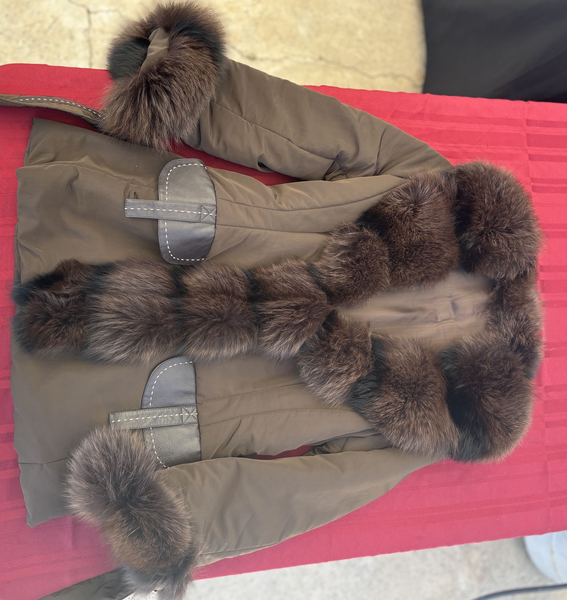 Very warm, genuine leather/ fur coat great condition size 8