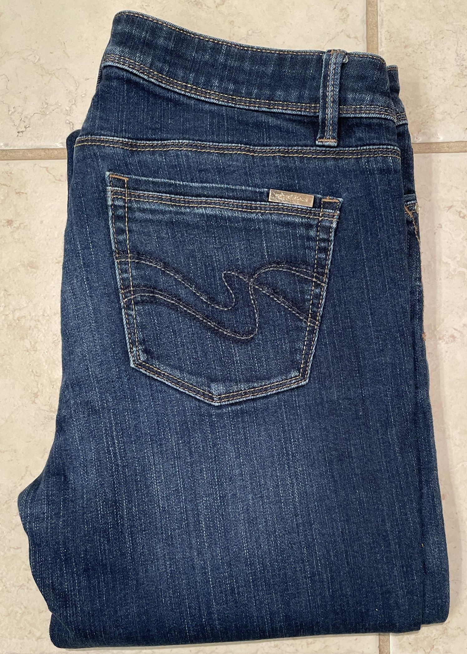 White House Black Market bootleg blue jeans in size 4R with a 30” inseam in good condition selling for $15.00