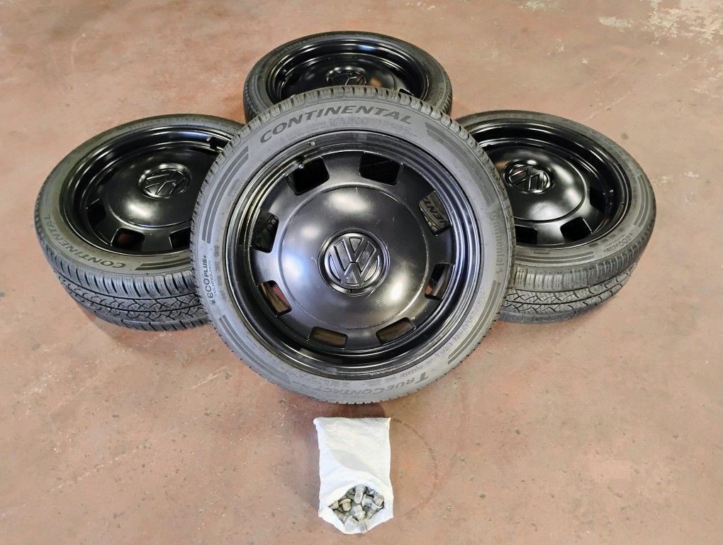 Set wheels and tires 215/45/17" continental good tires around 85 % wheels fit Volkswagen beetle Jetta Passat and more to 5 lug 5x112 let me know if you have any questions thank you