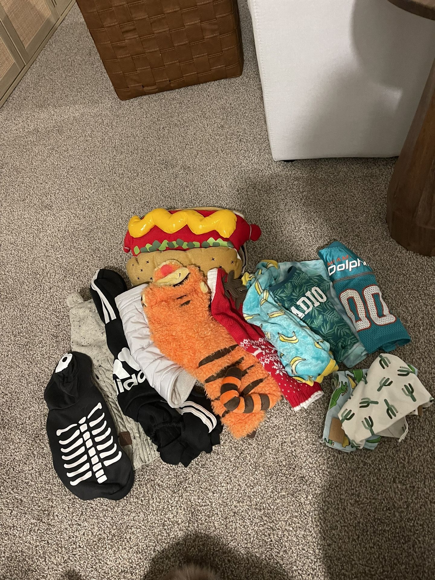 Bundle of small to x small dog clothes, bandanas and costumes