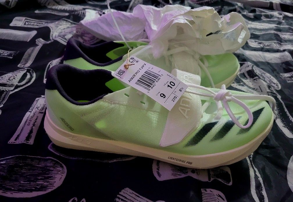 ID7243 | Men’s 9 adidas Adizero High Jump Track And Field Spikes “Green Spark