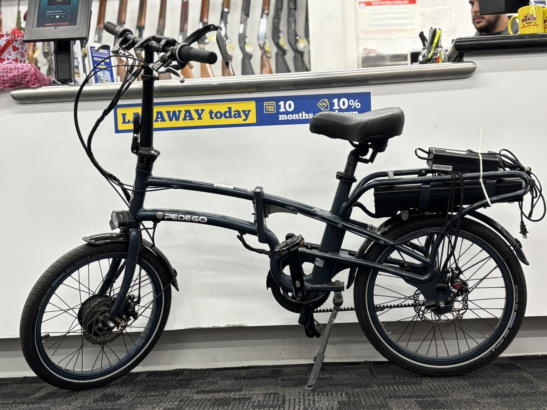 Pedego electric mike , model element , serial number is Y20D000062 , comes with charger , only 82 miles on it For sale at Irving super pawn, we are located on 580 s belt line rd , we are open from 9am-7pm on Monday-Friday , Saturday 9-5and Sunday 10-5 , layaway is available with all items only 10% down and 10 months to pay off !