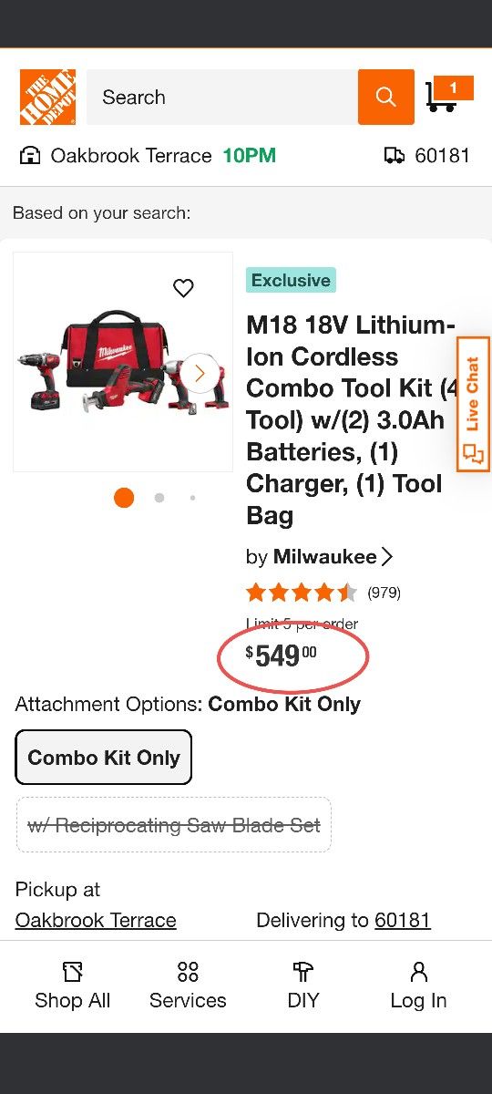 Brand NEW Milwaukee M18 4-Tool Set Model # 2695-24 Set includes the following: 1-Hammer Drill / Driver 2-Impact Driver 3-Hackzall Recip Saw 4-LED Work Light 2-XC3 Batteries 1-M18 & M12 Battery Charger 1-Contractor Bag This BRAND NEW Milwaukee 4-Tools Set Sells For $549+Tax =$600+ I'm selling mine for ONLY $400 that's $200 OFF or 33% OFF A GREAT DEAL!!! Must meet at a safe public space during daylight hours on the weekends around Westmont, IL.