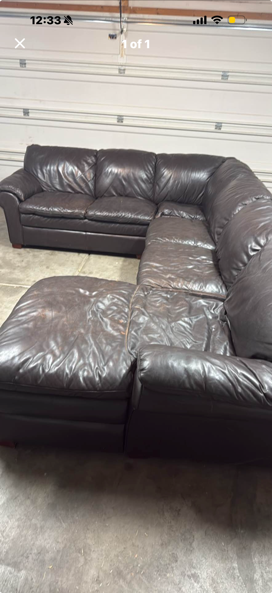 Large leather couch. It is really comfortable and still in good shape 134 inches by 96 inches I can bring it to you for an extra $100