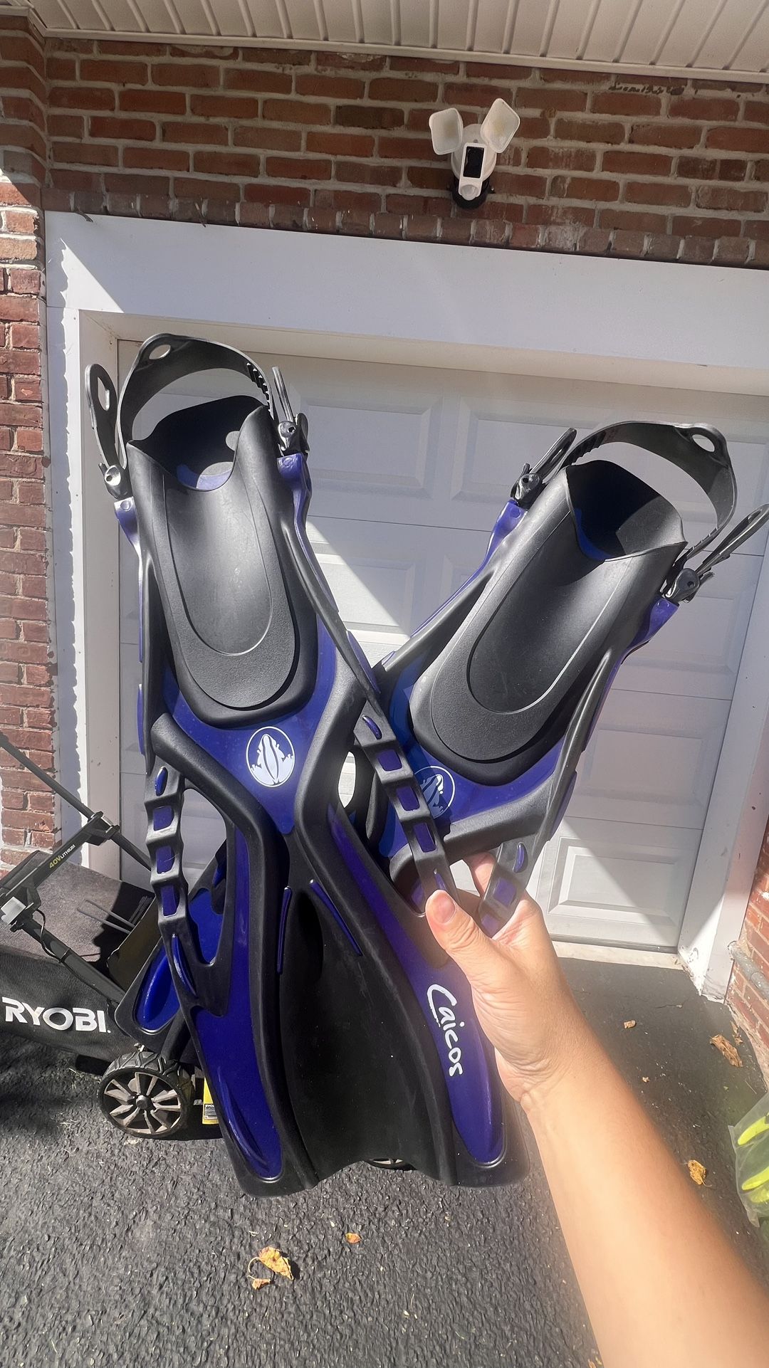 NEW! Fins Size-M U.Ssize 4.5~8.5 outdoor recreational scuba diving & snorkeling Akona Caicos Fins ENHANCED PROPULSION - Vented blade design efficiently channels water, maximizing thrust with each kick for superior underwater maneuverability and reduced fatigue. CUSTOMIZABLE FIT - Open heel design with adjustable straps ensures a secure and comfortable fit for a wide range of foot sizes, accommodating various diving boots. DURABLE CONSTRUCTION - Crafted from high-quality polypropylene, these fins are built to withstand the rigors of frequent use in diverse underwater environments. OPTIMIZED PERFORMANCE - The combination of blade design and material provides an ideal balance of power and flexibility, enhancing your diving experience. VERSATILE USE - Ideal for both recreational scuba diving and snorkeling, these fins offer reliable performance and comfort in various aquatic conditions.