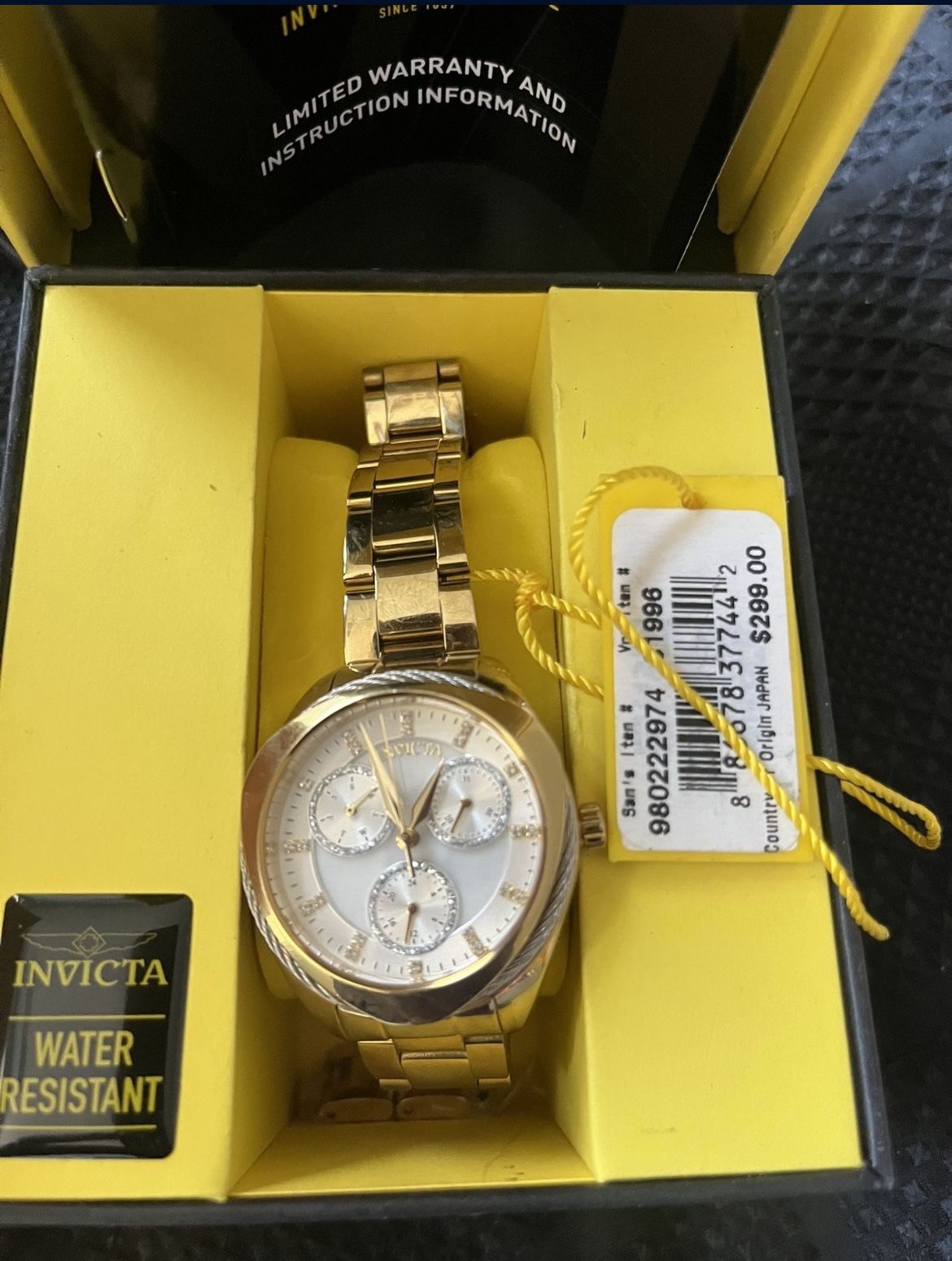 Invicta Watch Gold Tone Stainless Steel Have had 3 links removed but still have them and the original box and all watch information