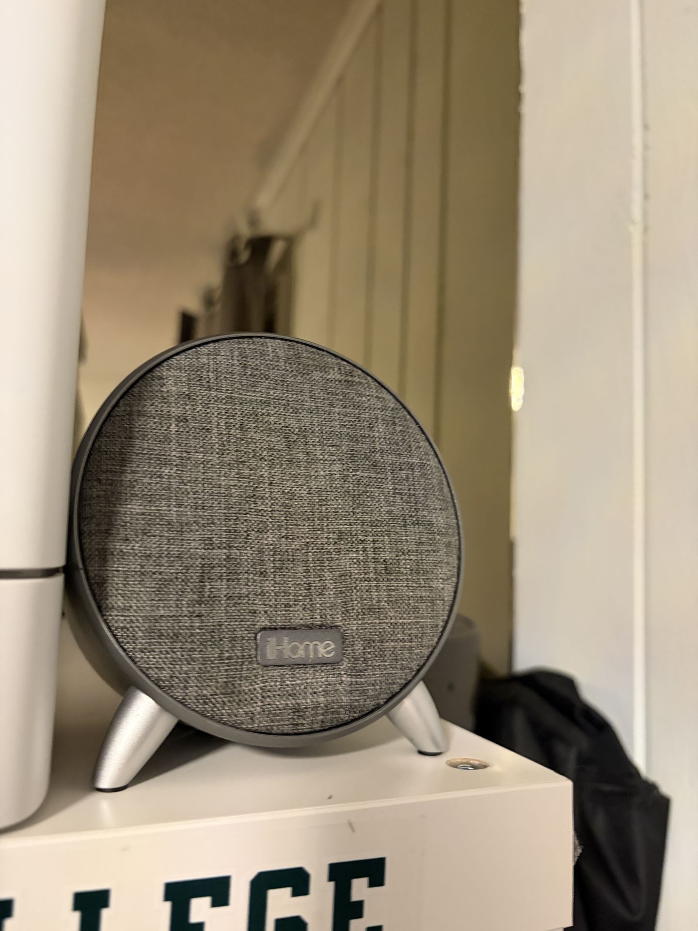 iHome Bluetooth alarm clock speaker in great working condition. Modern grey fabric design with compact size perfect for nightstand, desk, dorm, or office. Features: • Bluetooth connectivity • Digital alarm clock display • USB charging ports • Compact tabletop design Works perfectly. Selling because I no longer use it. Asking $25 (or best offer). Pickup available.