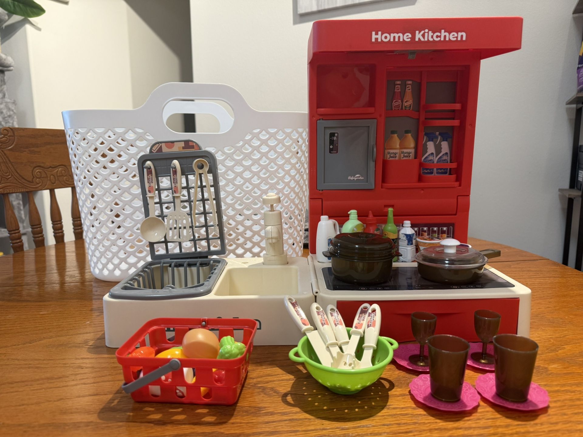 In perfect condition. My daughter doesn’t okay with it anymore. Comes with everything in pic, including the white basket for the toys.