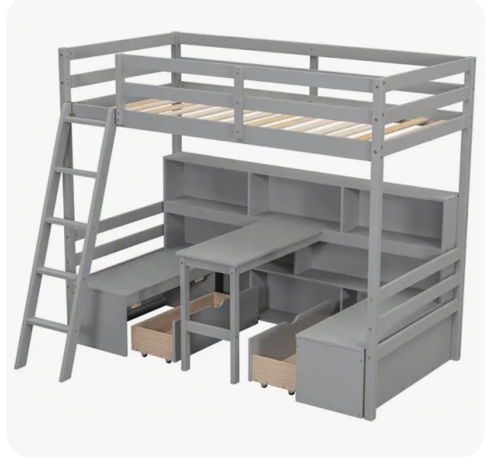 Full sized loft bed. Make us an offer. We are moving and need to sell. This is in the box still and due to down sizing it won’t fit where we are going.