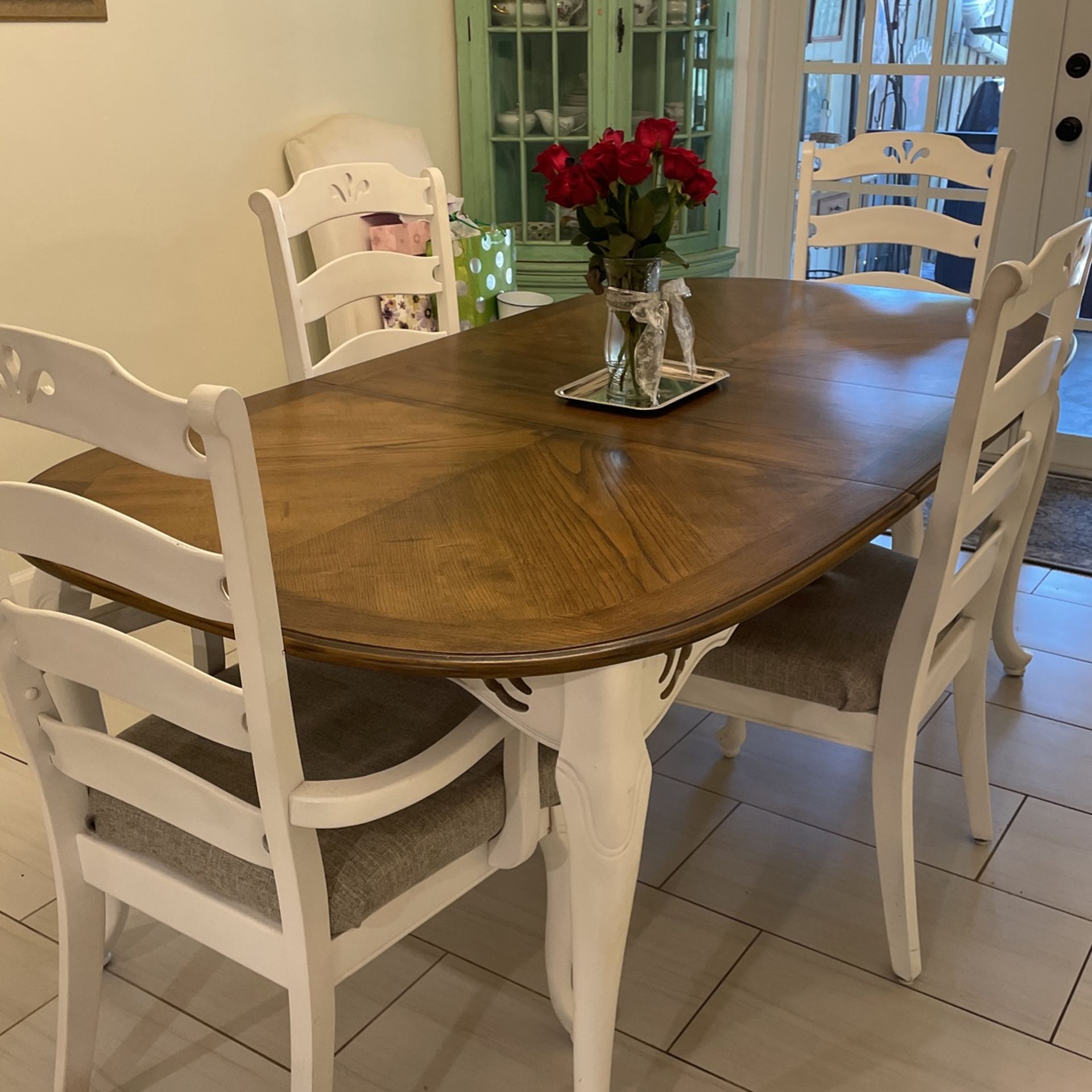 5 piece dining room set with server great for serving and storage also antique storage piece can be sold separately negotiable furniture is located in Coral Springs
