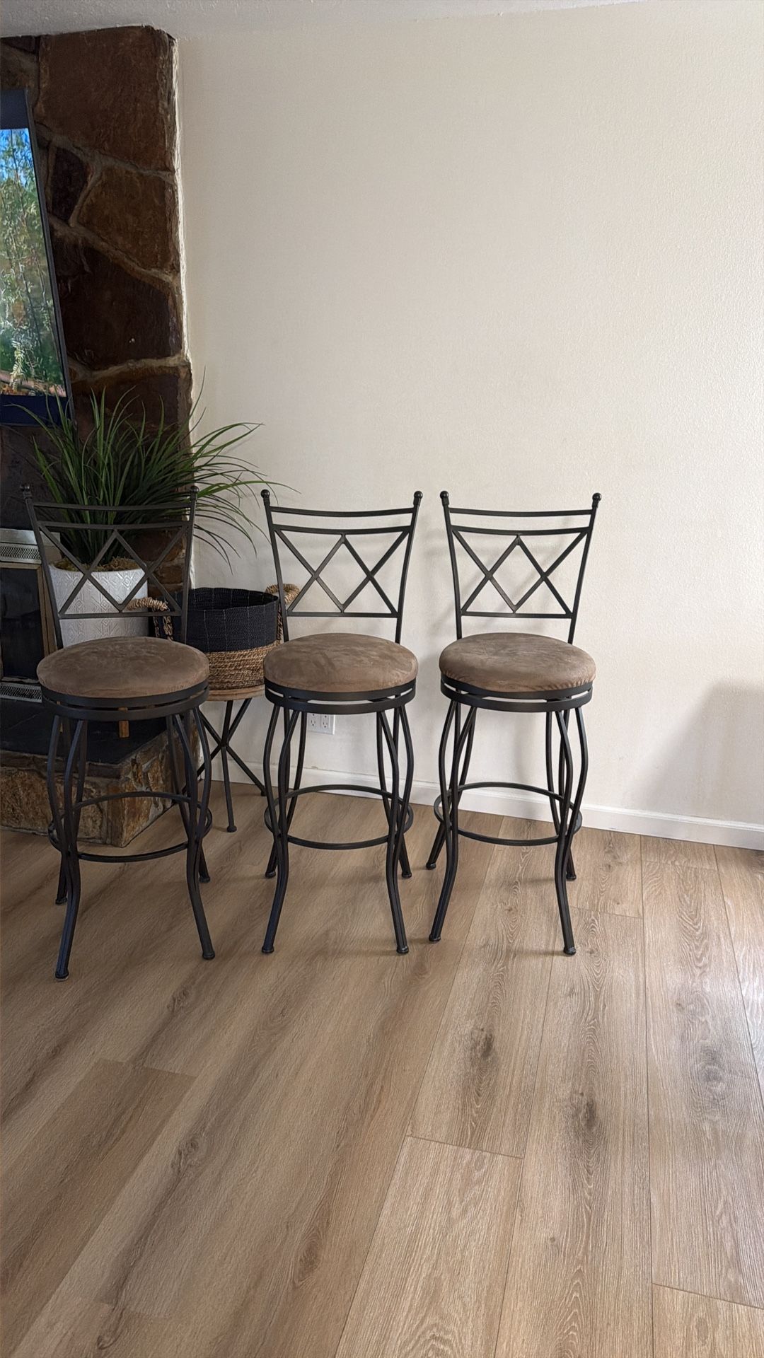 Very nice strong and sturdy metal comfortable , seats twist used but I’d say good condition no crazyiii stains normal wear check pictures feel free to ask for additional