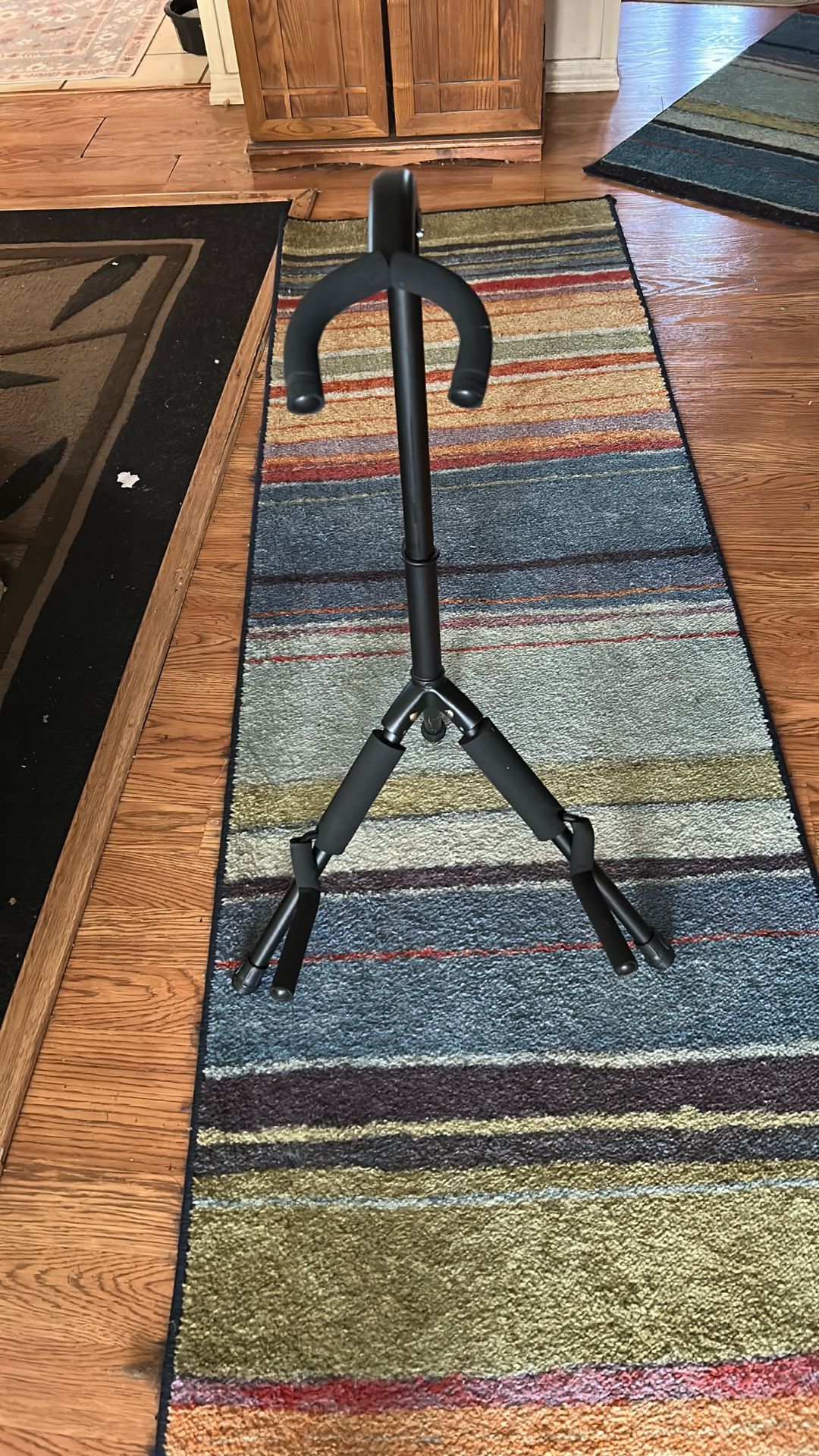 Compact guitar stand. It was too wide for hubby guitar. Would be great for an acoustic. Hardly used.