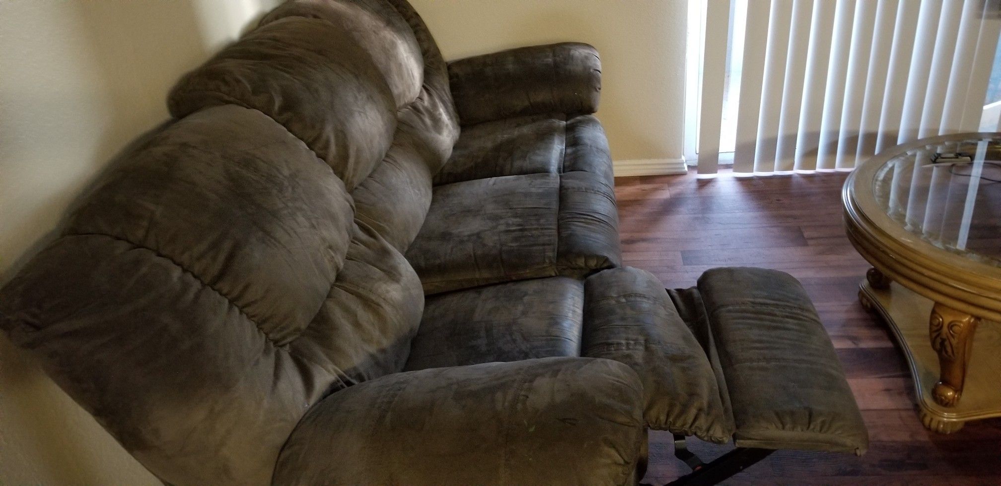 Both corner seats recline. Really nice. Both same size. Asking for $300 for both. Bought them for much more. Really durable and heavy duty. Super soft and comfortable.