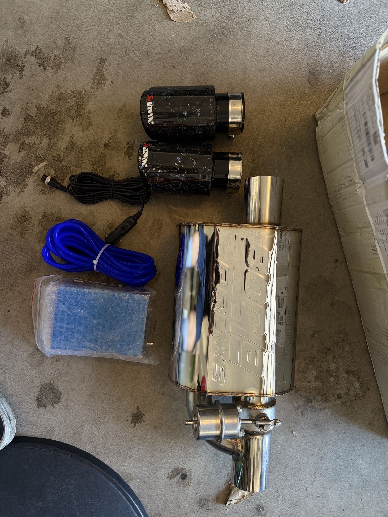 comes with full set up borla muffler with two carbon fiber exhaust tips will sell muffler for 300 and tips for 75 each if you want to do separate will take apple pay and cash