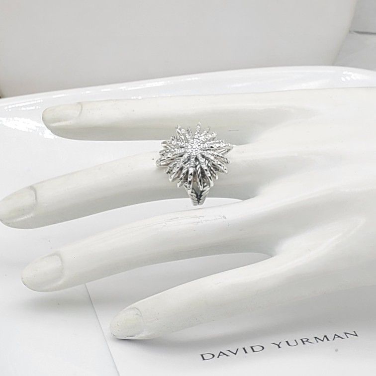 David Yurman Sterling Silver Starburst ring Sz 6.5 925 Sterling Silver Pave diamonds 0.65 tcw Sz 6.5 Bag & box included