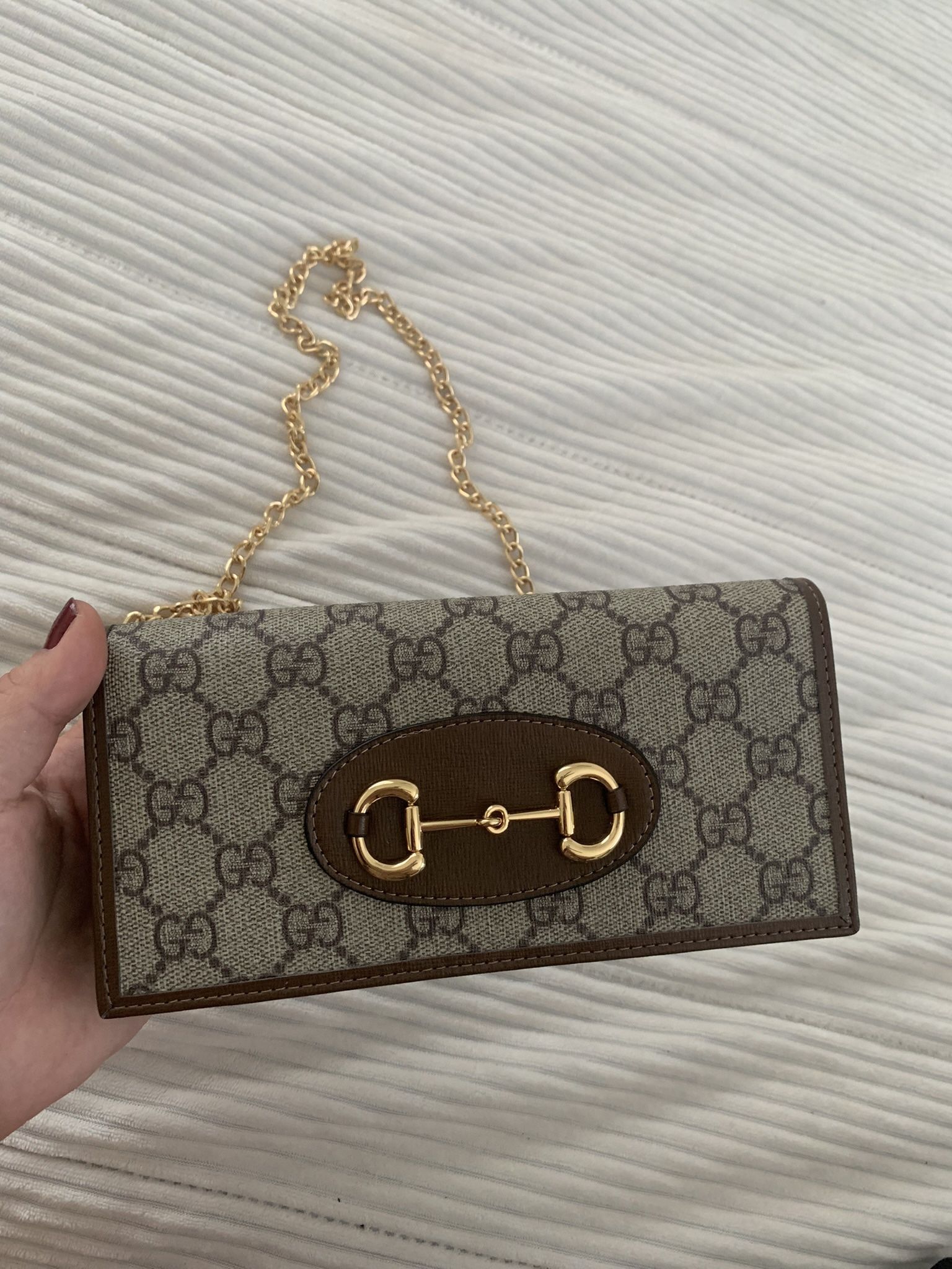 Woman wallet with gold chain, horsebit style with supreme canvas. can be used as a small purse or regular wallet. pick up in Pasadena