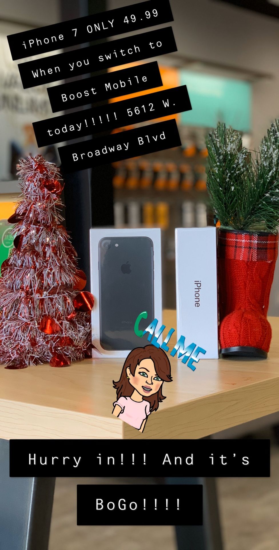 Stop in today and receive a iPhone 7 for only 4999 when you make the switch to boost mobile switch one line and received two for only $100 must pay first month of service Taxes and Activation message me for details