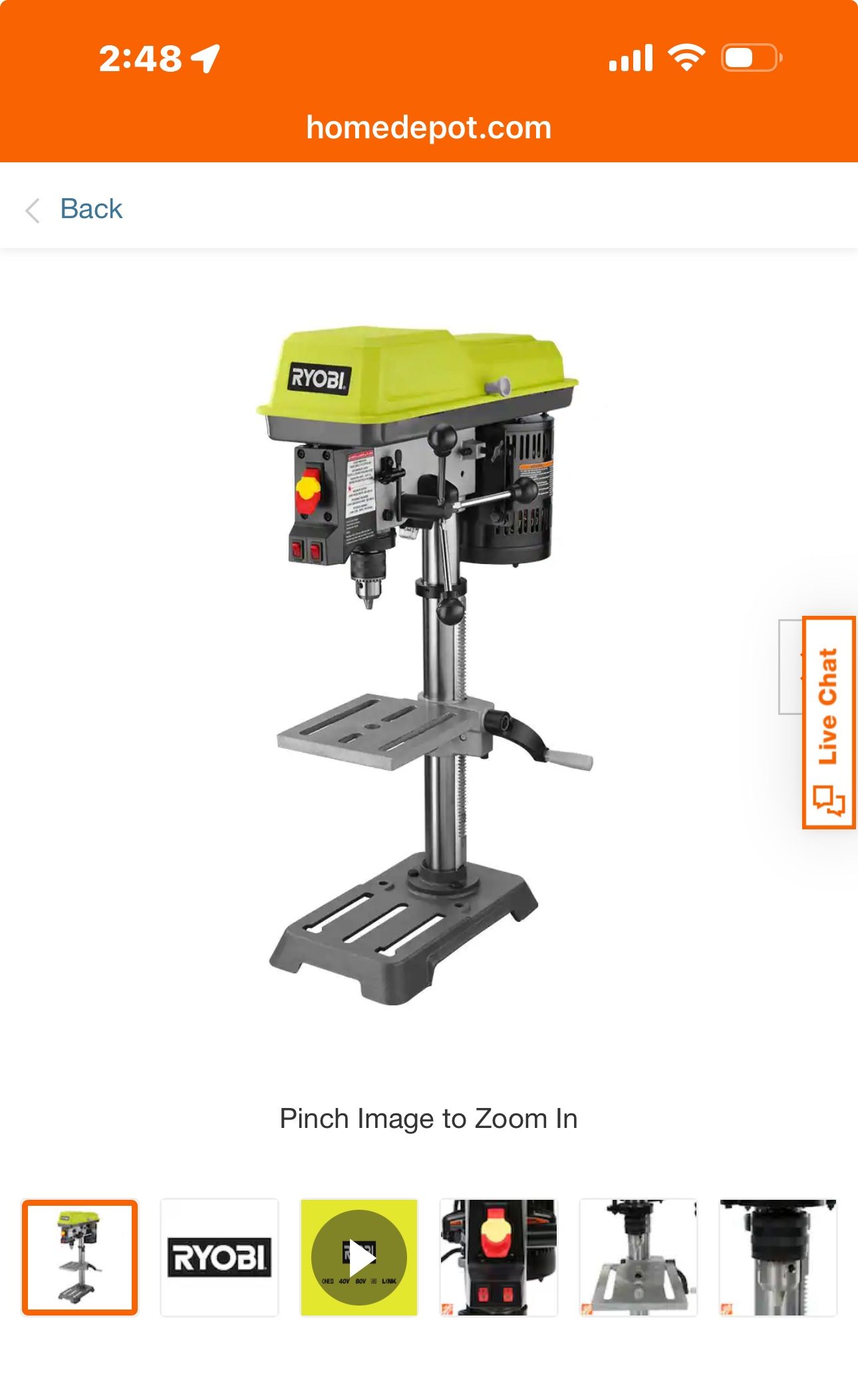 The Ryobi 10-inch drill press is a compact tabletop drill press designed for drilling precise holes in wood, metal, plastics, and other materials. It balances power, versatility, and ease of use, making it suitable for hobbyists and light-to-medium duty workshop tasks. Exactline Laser Alignment System • Projects a laser crosshair onto your workpiece so you can see exactly where the drill bit will hit before you start drilling, improving accuracy and reducing mistakes.  ⚡ 5 Speed Settings • Variable speeds from around 620 to about 3,100 RPM let you choose the best feed rate for different materials and bit sizes.  🌀 Powerful Motor • Equipped with a 1/4 HP induction motor (typically around 3 amps) that’s durable and capable of drilling through a variety of materials.  📏 Adjustable Table • The work table swivels 360° and tilts up to 45°, plus it’s height-adjustable so you can position materials conveniently and clamp them in place.  📌 Depth Stop • A locking depth stop lets you drill multiple holes at the same depth — helpful for repeat operations.  💡 Built-In Worklight • Includes an LED worklight that illuminates your drilling area for better visibility.