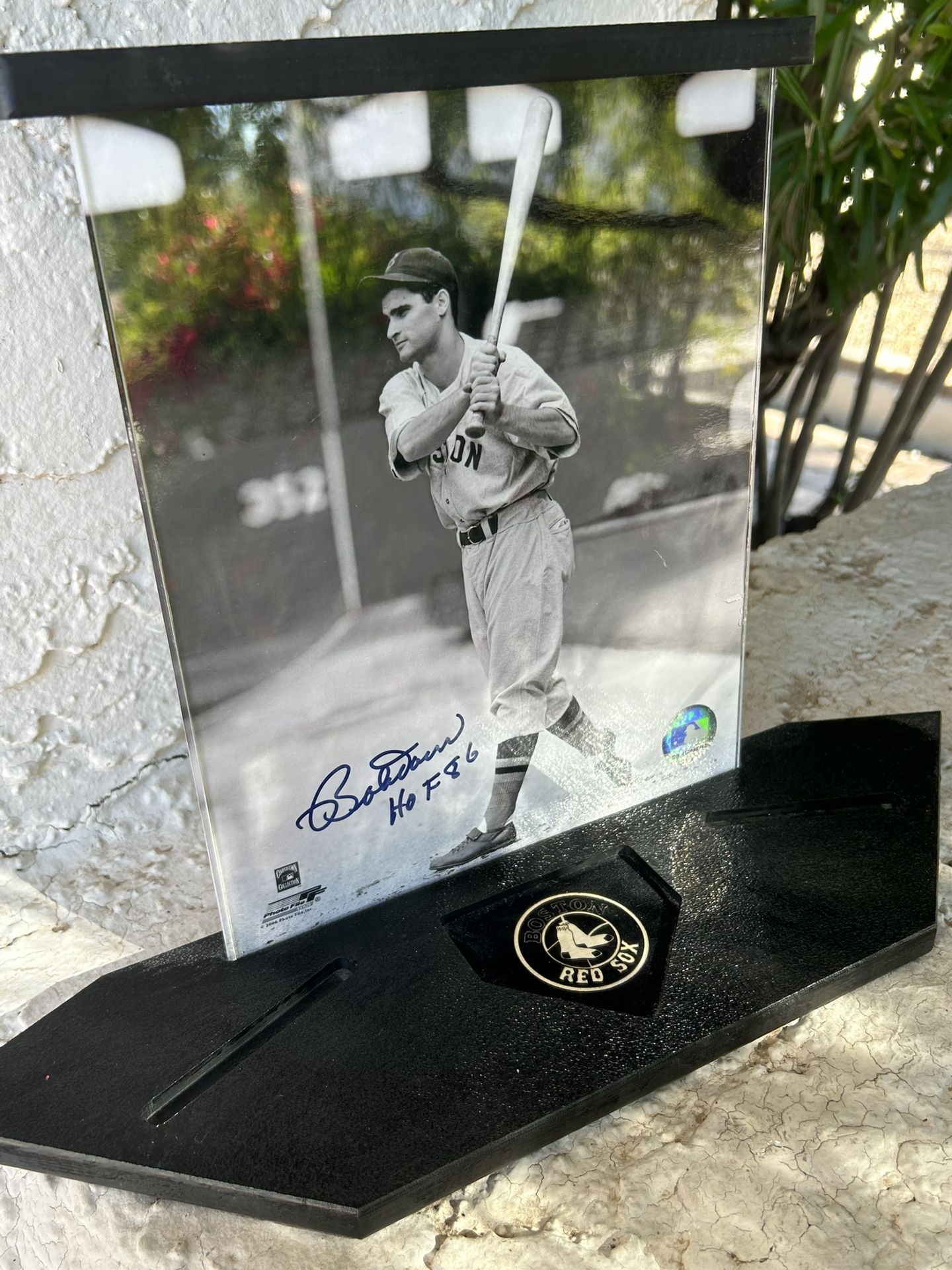 Hall of Fame MLB Bobby Doerr , 8x10 autographed photo in display , official MLB Seal , Cooperstown Collection , pose 2 BOSTON RED SOXS