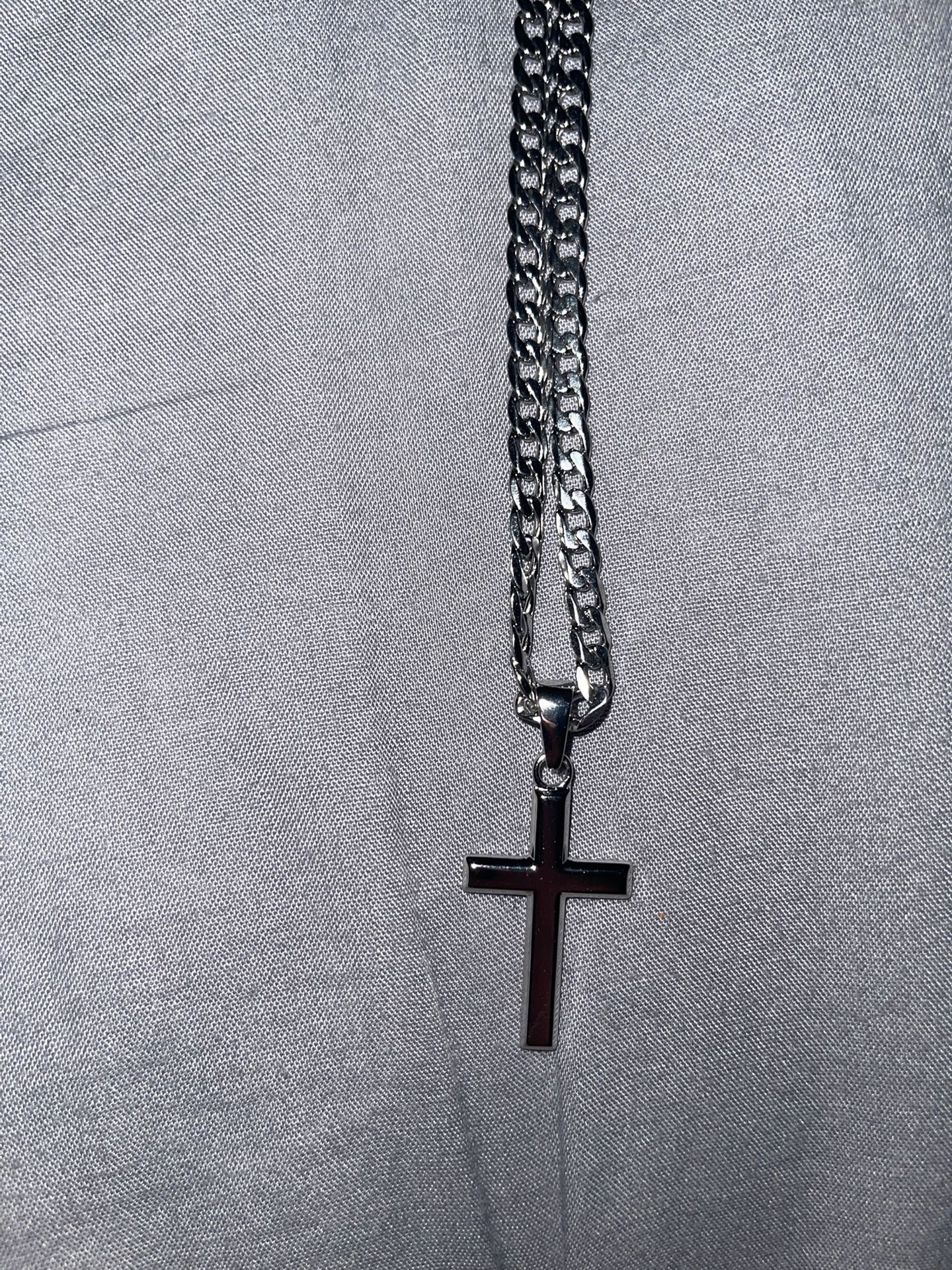 925 Sterling Silver Cross Necklace And Stainless Steel Cuban Link Chain