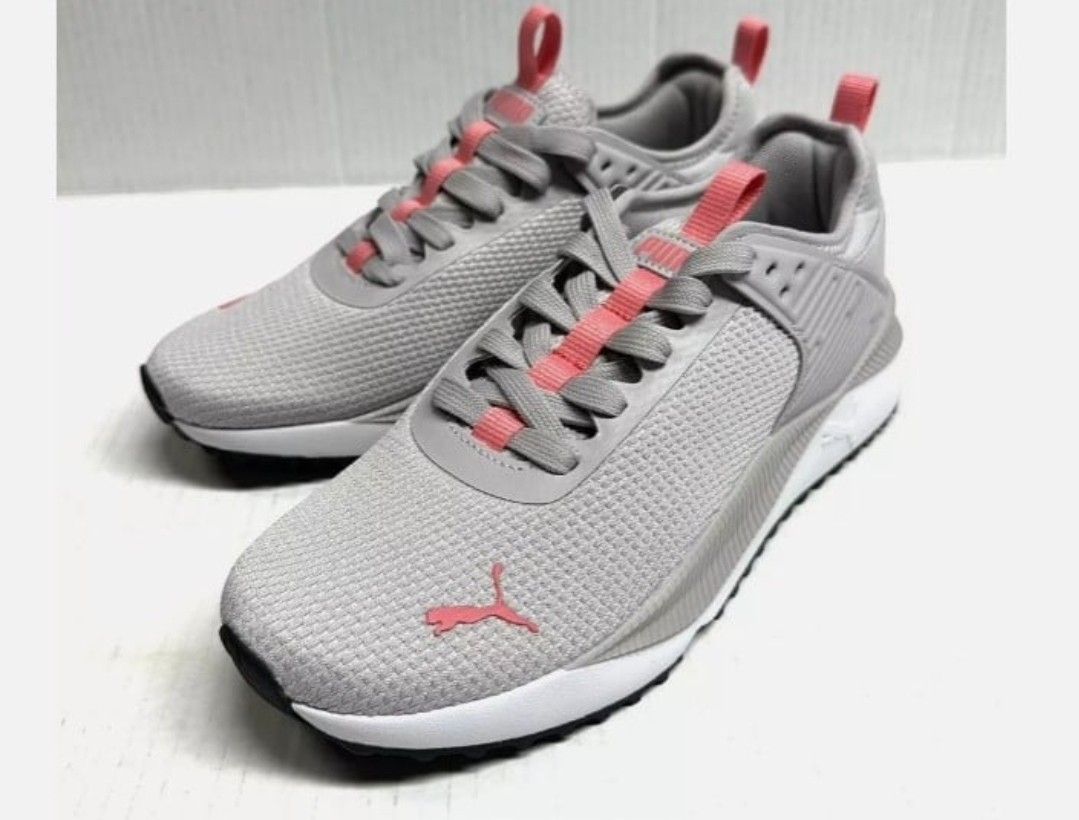 PUMA® Colors: Purple Padded tongue for comfort Mesh and synthetic leather upper Cat logo on toe Puma branded patch on tongue Made in China Content: Upper: Textile and Synthetic Midsole: EVA Outsole: Rubber
