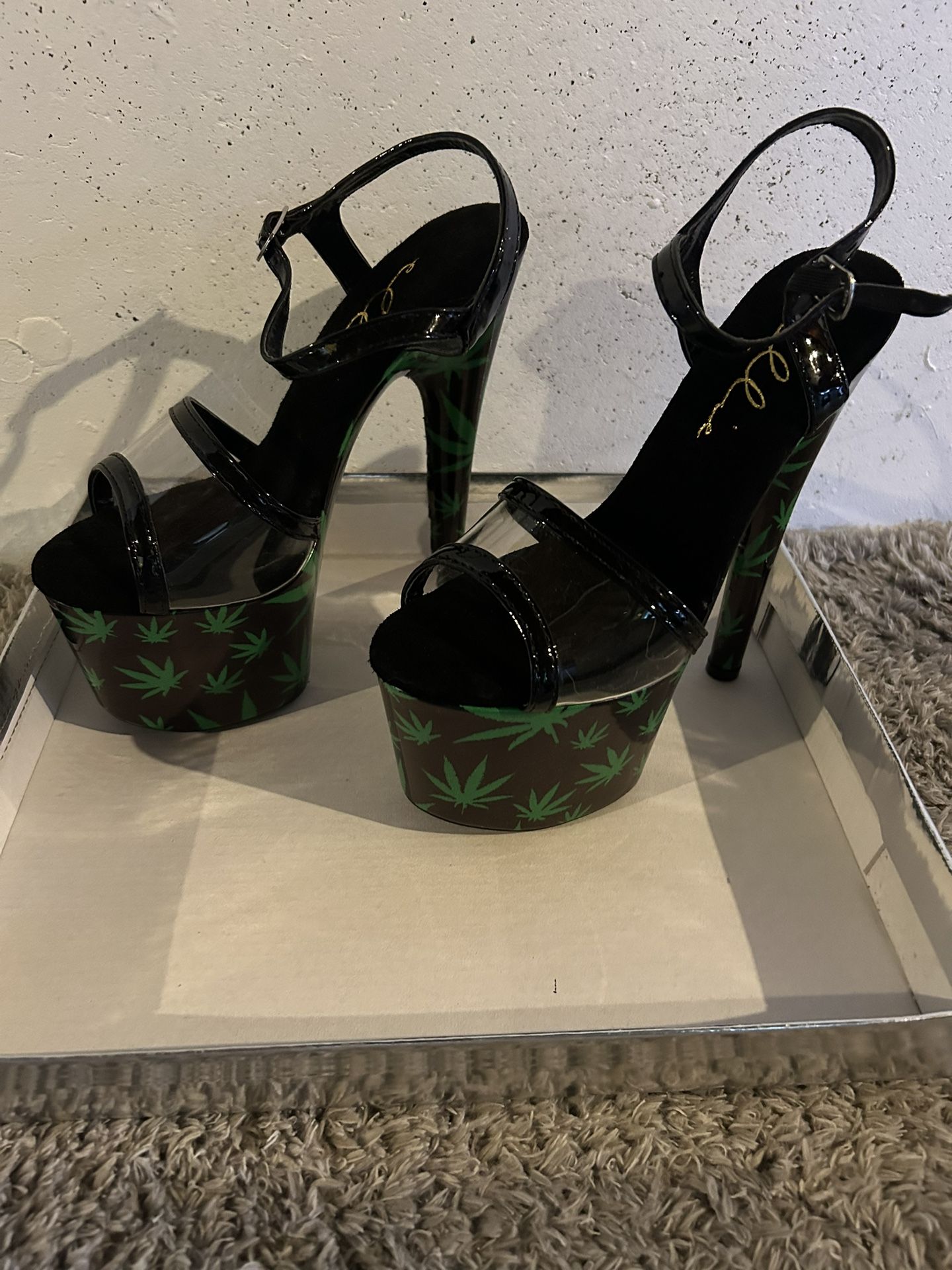 7” Ellie Stiletto Marijuana Print Heels. Size 6. New, never worn. $50.00.