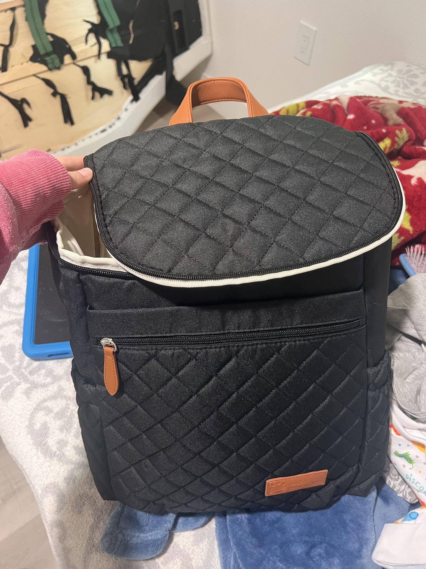 Brand new diaper bag never used. Also comes with a new never used nursing cover.