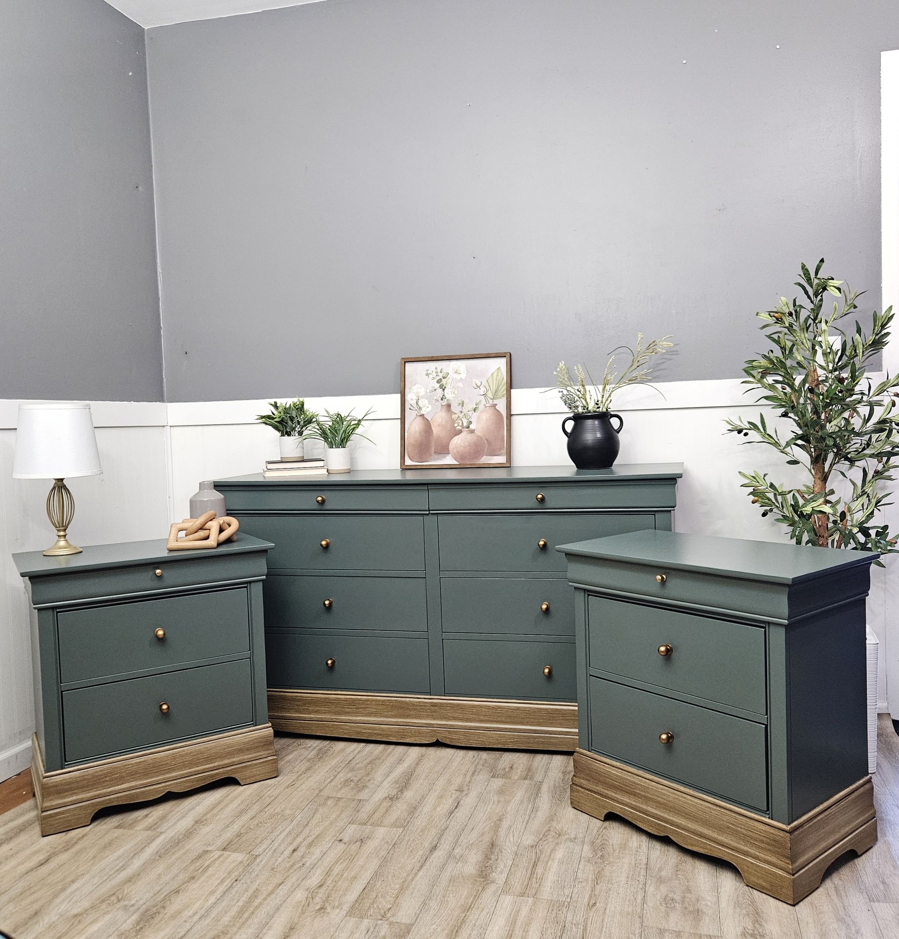 ✨ 3-Piece Bedroom Set – Custom Green + Painted Wood Bases ✨