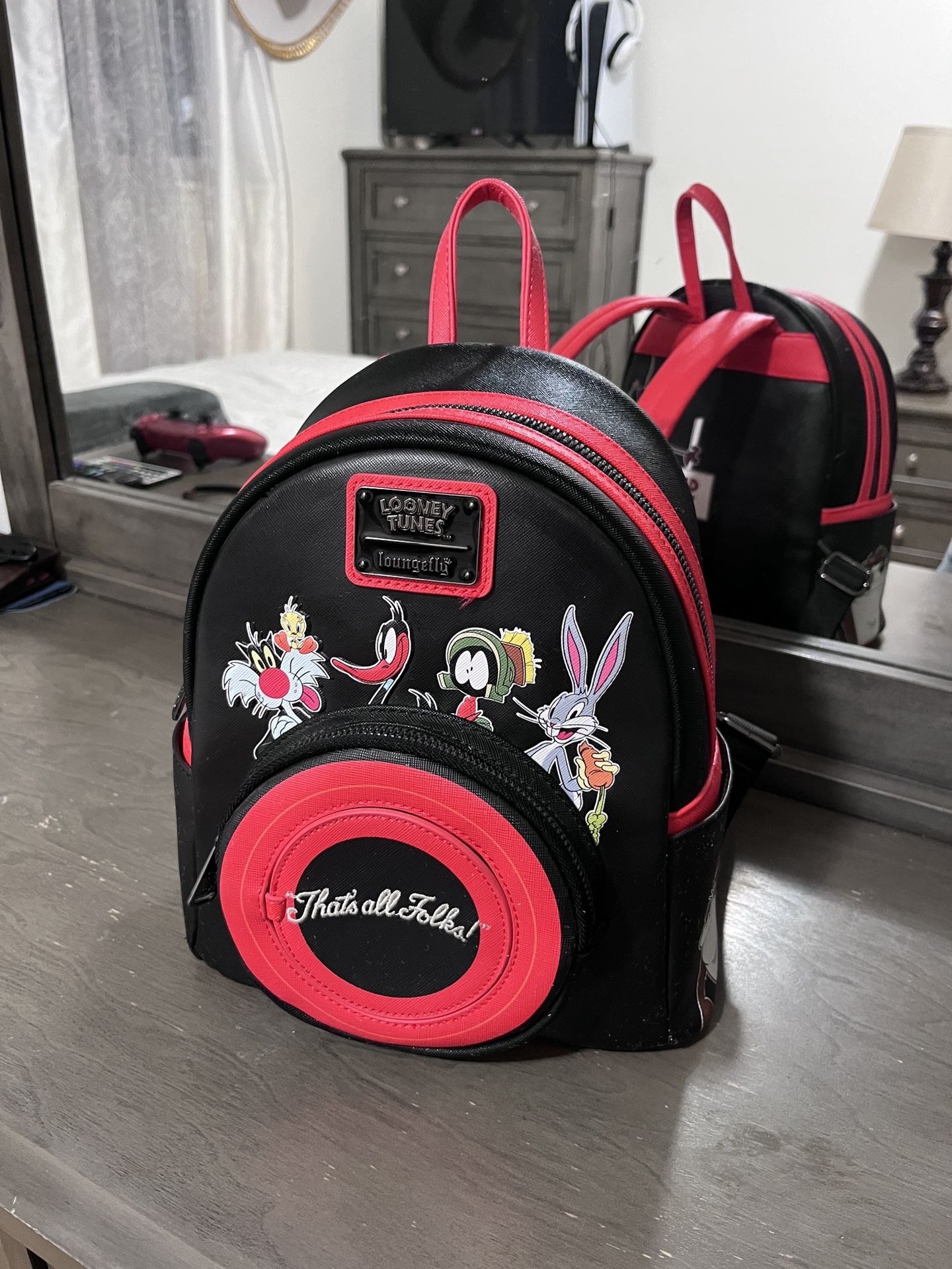 Brand new Loungefly x Looney Tunes mini backpack. Never worn, no flaws. Classic “That’s All Folks” design with Looney Tunes characters on front. Black and red trim with adjustable straps. • Brand new condition • No stains, cracks, or peeling • From smoke-free home • Available for pickup Serious inquiries only. Message me if interested.
