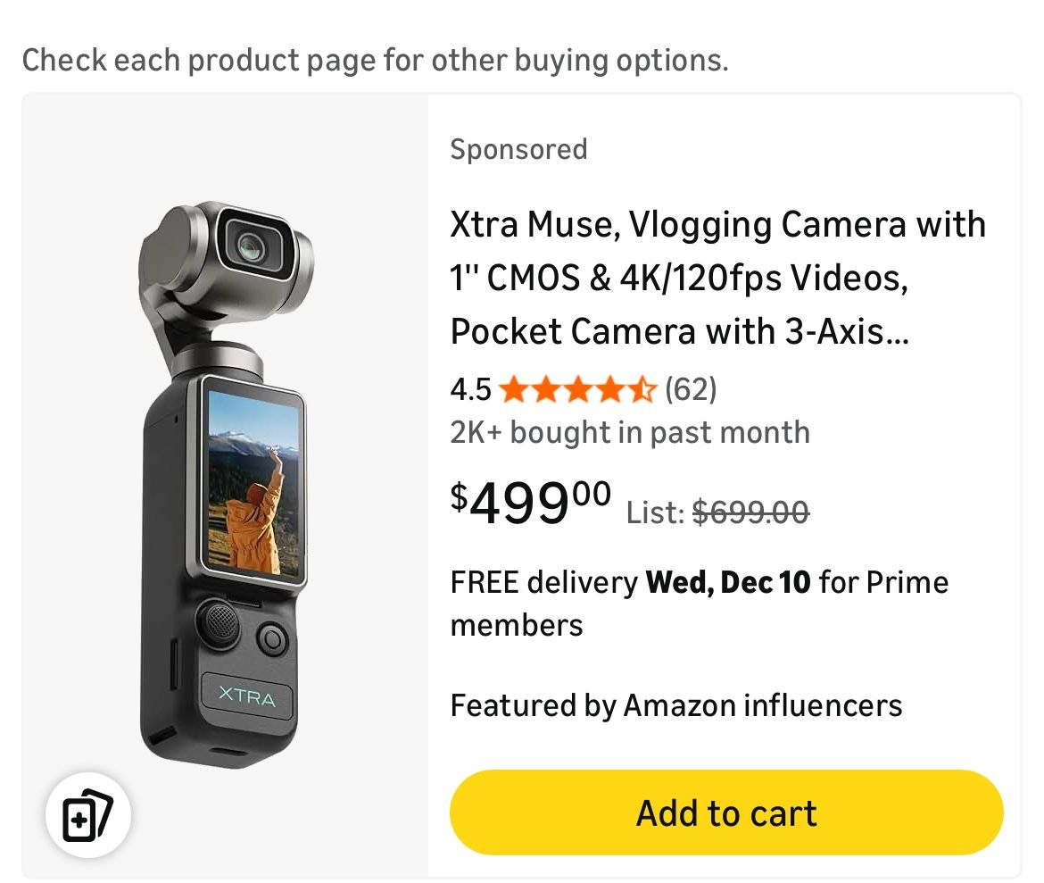 XTRA Muse Vlogging camera Charger, Memory Card and accessories included