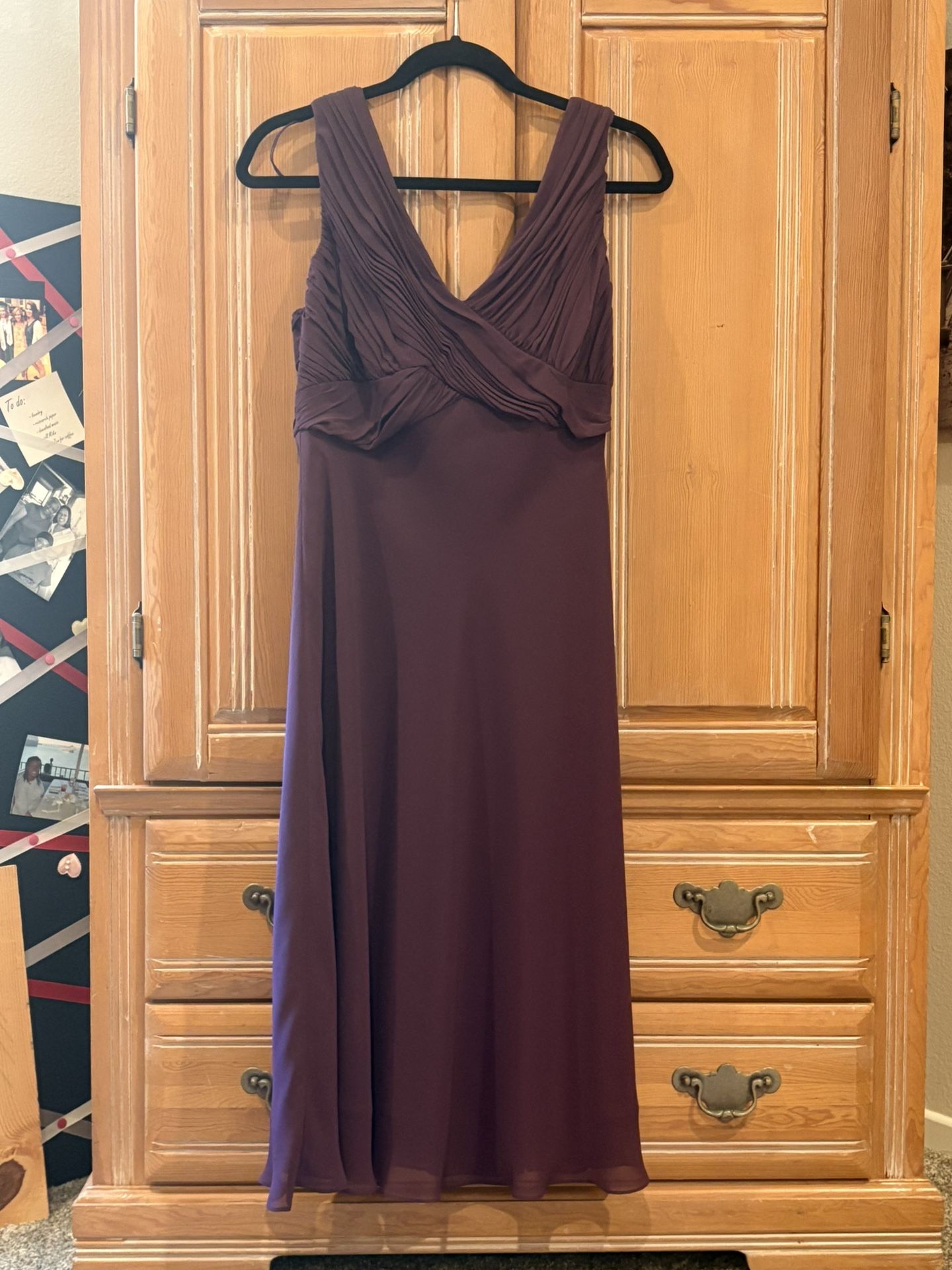 Eggplant Cocktail Dress by Adriana Papell. Sleeveless with V-neck Ruching. A line skirt that zips along the back. Size 16. Dry Clean Only Worn Once $45 Floral Dress by Dress barn. Swoop-neck and Drop back. Size 10 Dry Clean Only ($20) Worn Once Black Cocktail Dress V-neck w/attached slip. A line skirt with low back and jewel button up. Size 9. Dry Clean Only ($35) Never Worn