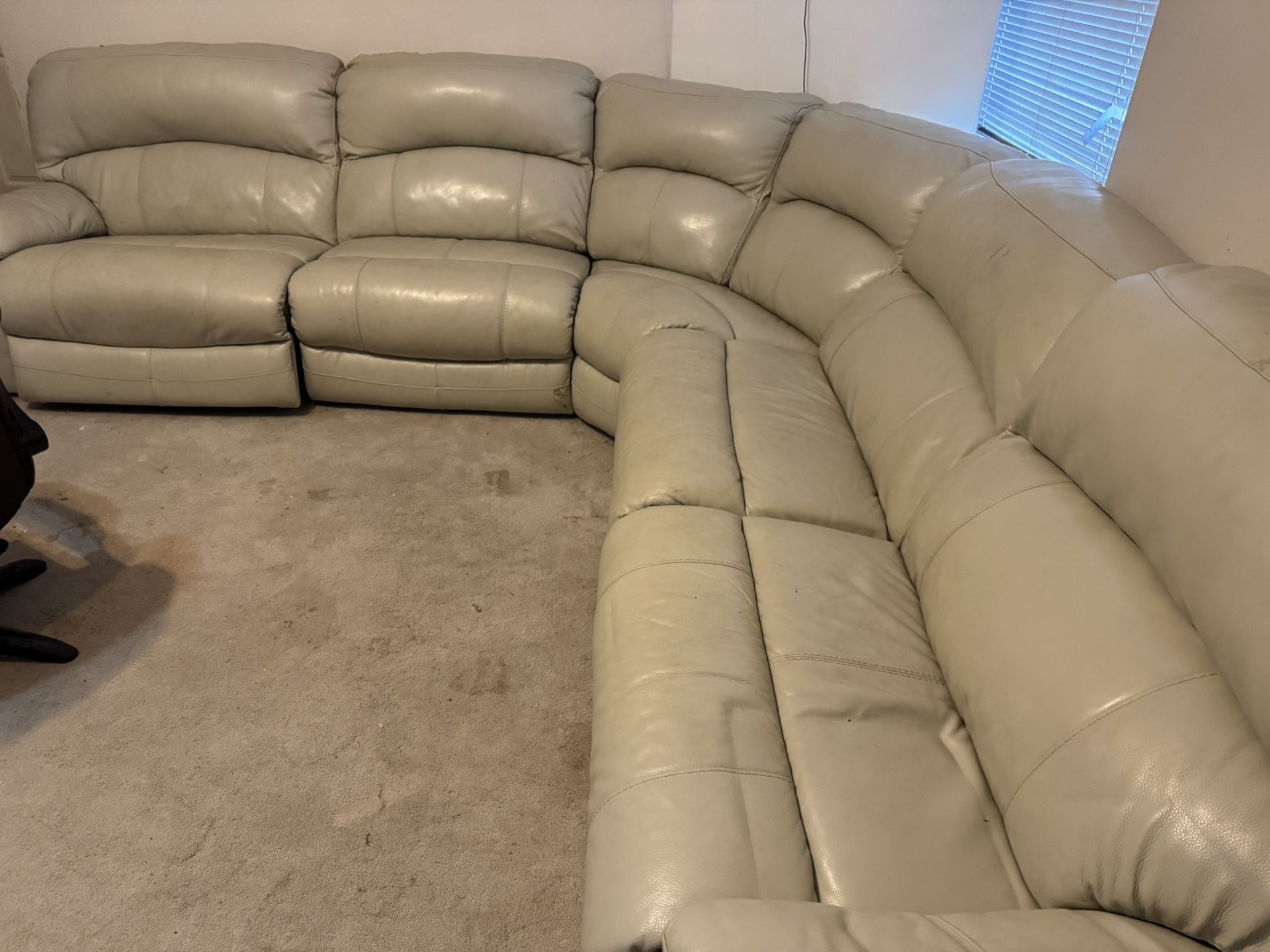 Sofa is barely used. It is in the upstairs living room. Two electric recliners on the ends and a manual one. The pieces can be arranged differently.