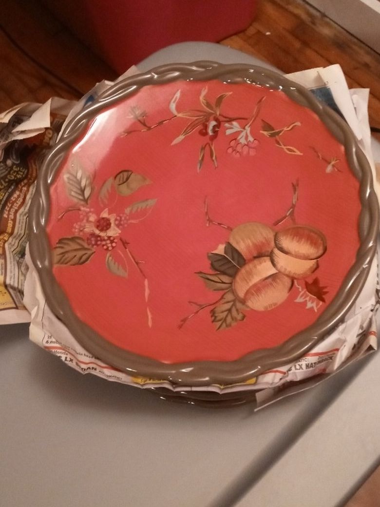 I have 6 large dinner plates in perfect condition without chips or scratches on them. Check my other listings for more matching items.