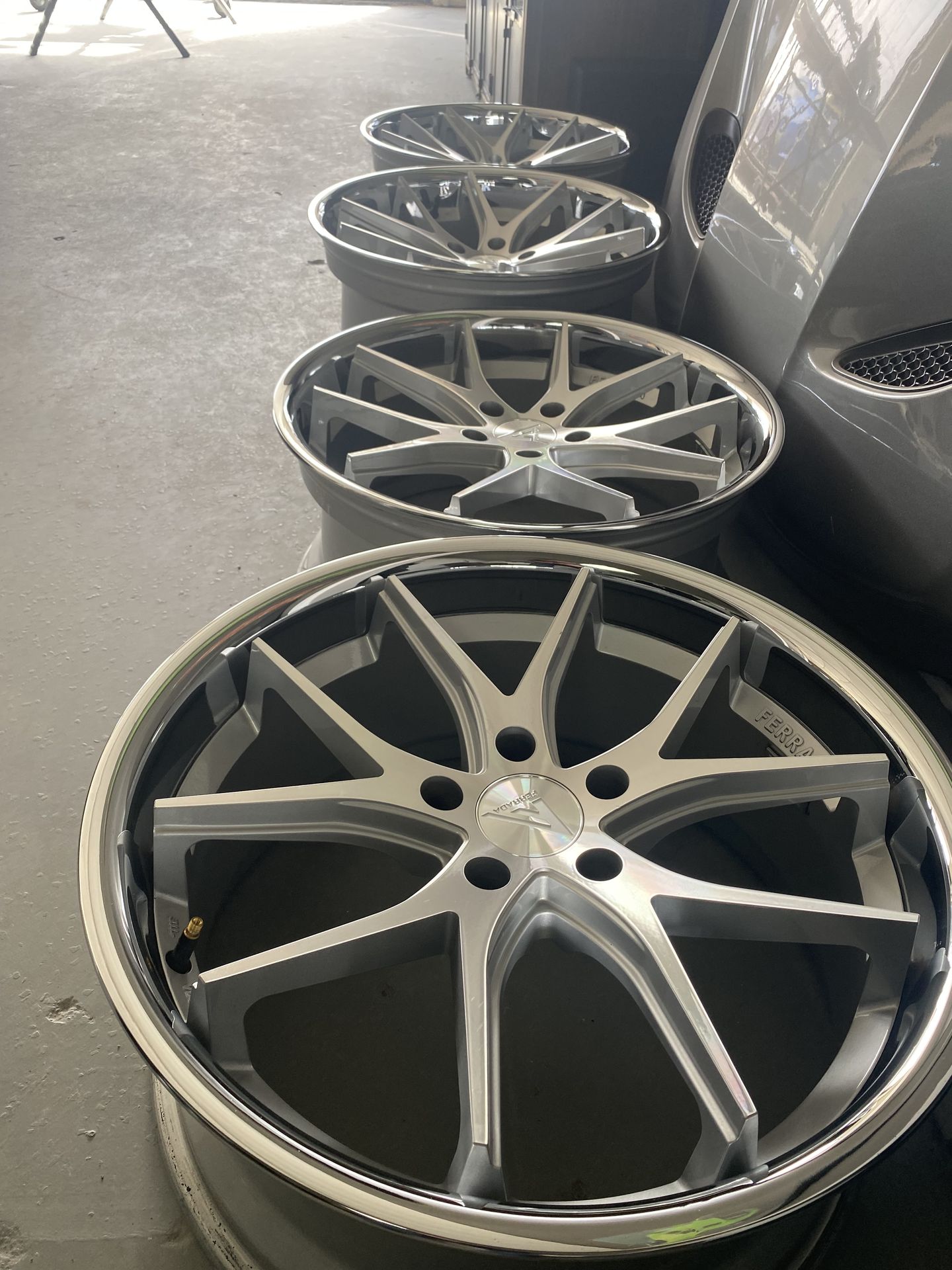 Great shape 20x10.5 rear with 38 offset and 20x9 front with 20 offset. 5x120 lug pattern. Came off a Cadillac ctsv V2 Coupe. No curb rash and comes with tpms sensors.