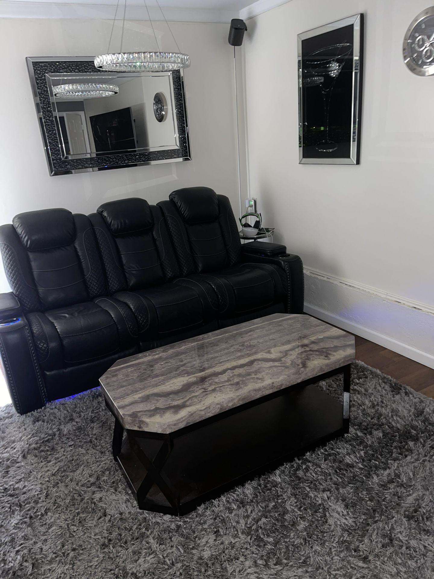 brown spresso Wood beige Marble Table With rolling wheels On the bottom Easy to move