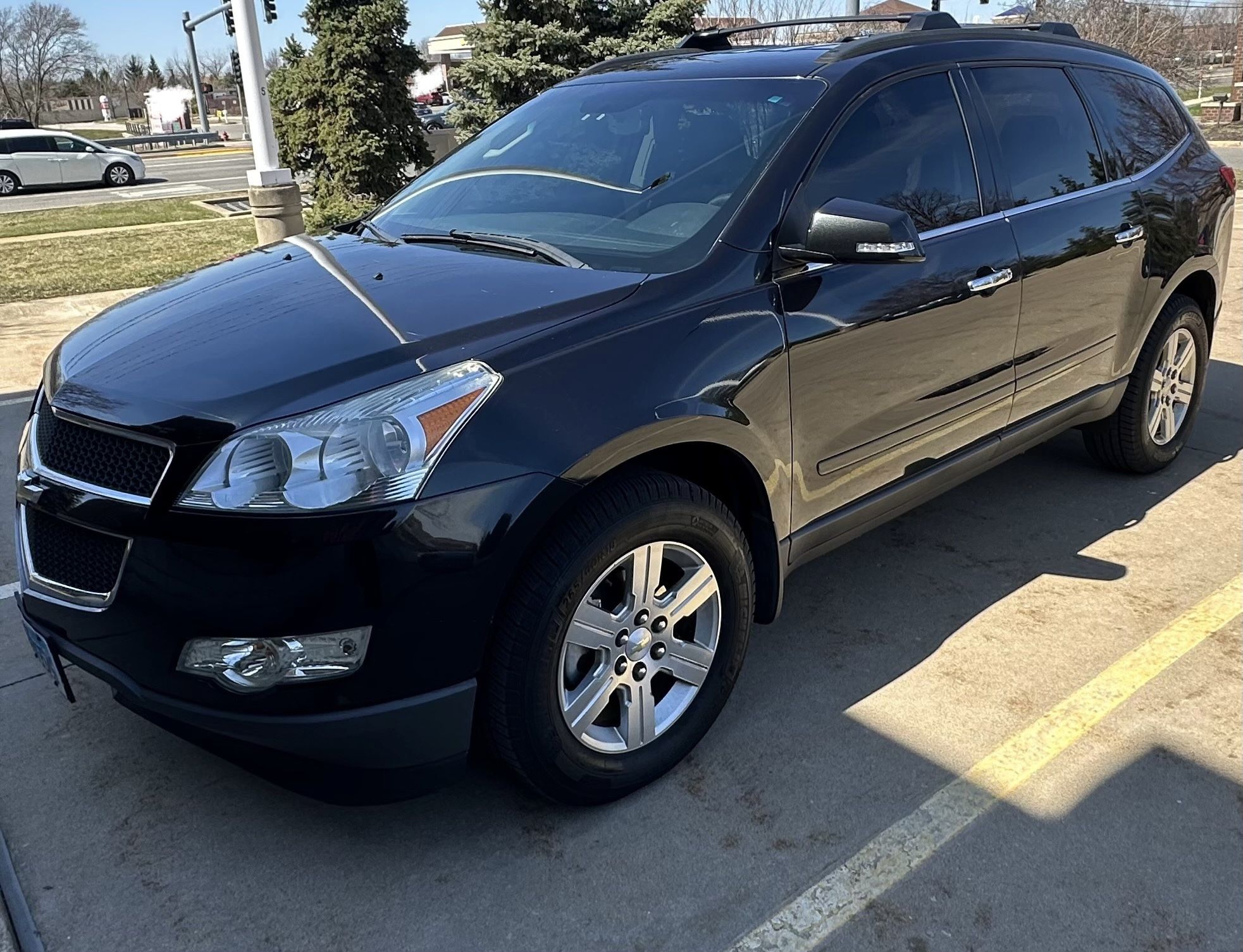 Selling my 2012 Chevy Traverse all wheel drive. This vehicle has been a great and reliable family SUV! Seats up to 7. Two bucket seat middle row and 3 seater back row. Drives great, all wheel drive for the harsh winters! Black exterior. Black leather interior. Sold as is.