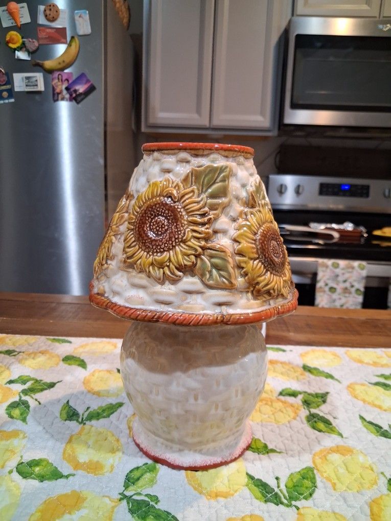 Beautiful Table Lamp; Multi-color with Sunflower on it. Includes Electrical Outlet with Bulb. Bought from QVC few Years ago. Good Condition; No Cracks or Breaks. Price: $25.00 or Best Offer.!