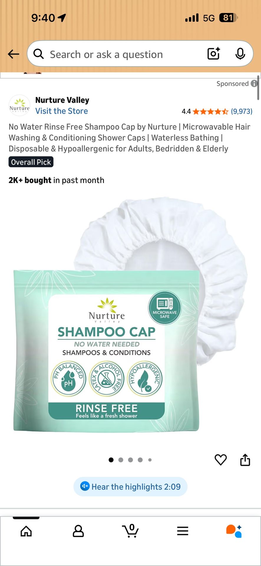 Nurture Valley Shampoo Cap