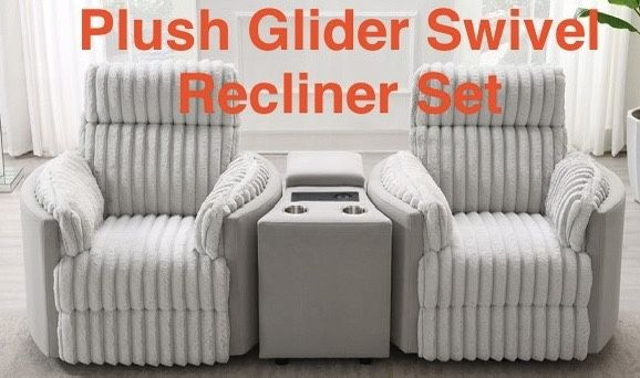 Brand New Plush Gray Corduroy Glider, Recliner with Swivel Console with Cup Holders, Storage, Wireless Charge and USB Port 40 x 37 x 41H AFFORDABLE PRICE GREAT QUALITY Free delivery Only $20 down! Financing available with Zero Interest on 90 Day payoff. (Easy to qualify) No Credit Needed! Can text you an application to your cell phone for immediate approval. WHEN YOU CHOOSE TO BUY FROM US; • Same/Next Day Delivery on most items. • Direct factory distributors - Pay for the item, not the overheads! • Cash / Venmo / Zelle / Cash App / Credit Card on delivery - Upfront Payment Optional.