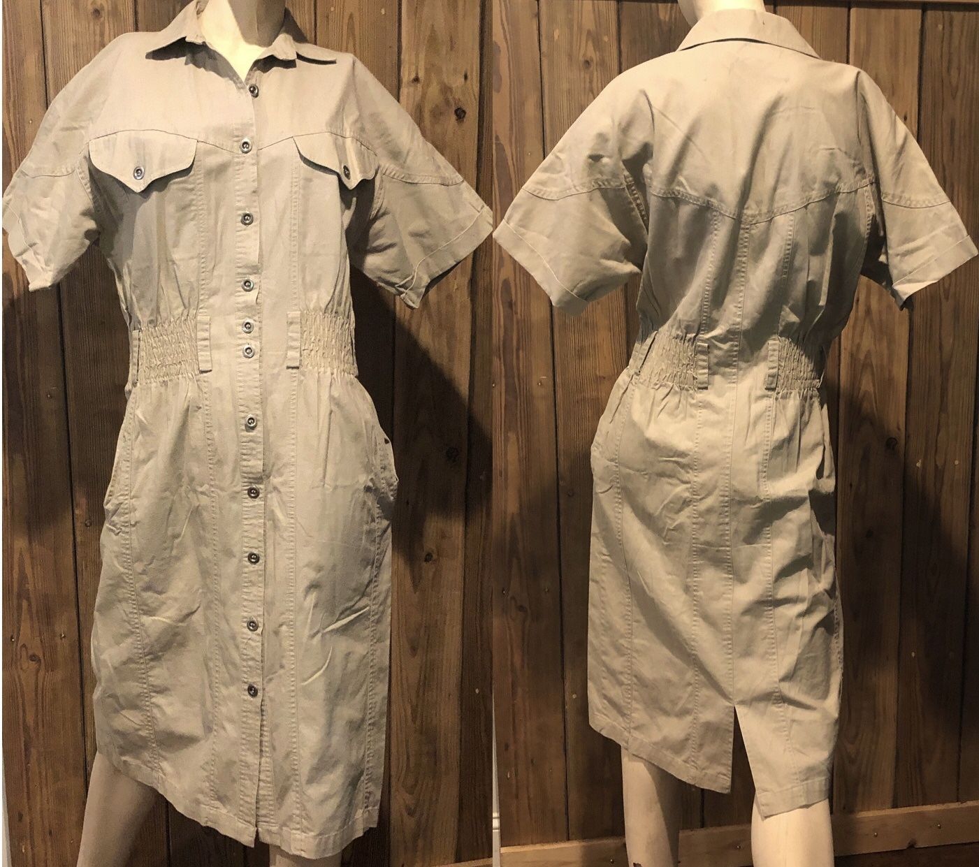 VTG 80s/90s Khaki Button Down, Safari Style Shirt Dress~Short Sleeve Pencil Sz 4