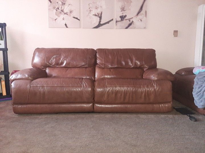 Flexsteel brand couch. Getting rid of only half, the couch. I'm keeping the smaller loveseat. It's very used, still working condition. Electric recliner. There's nothing wrong with it, just takes up too much space. Very heavy steel frame!! Pickup from apartment, no stairs. Delivery not available. Bring muscle. Really want it gone.