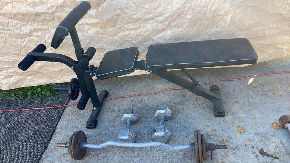 dumbbells 35 pouns, barbell 50 pouns and bench brand new I'm sacramento cp. 95838