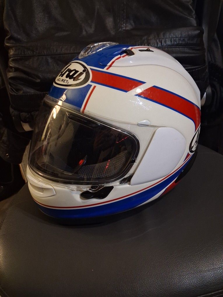 This Arai Corsair-X Schwantz 93 Helmet is a top-of-the-line racing helmet with a historical design with cutting-edge safety and performance features. Has never been used!
